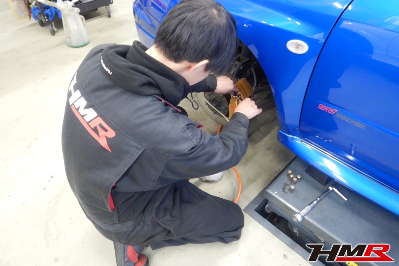 HMR(エイチエムアール)の秋山です。今回は1オーナー ガナドールマフラー装備のインプレッサWRX STI (GDB)の納車前点検整備を行いました。担当メカニックは手代木です。
