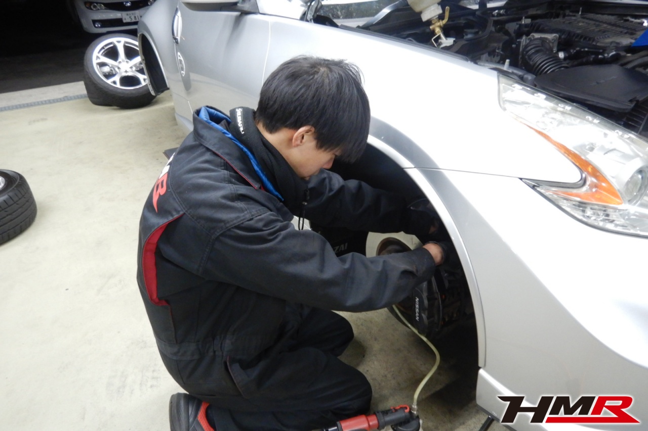HMR(エイチエムアール)の秋山です。今回はレイズ製鍛造19インチ 純正ブレンボ装備のフェアレディZ(Z34)の納車前点検整備を行いました。担当メカニックは手代木です。