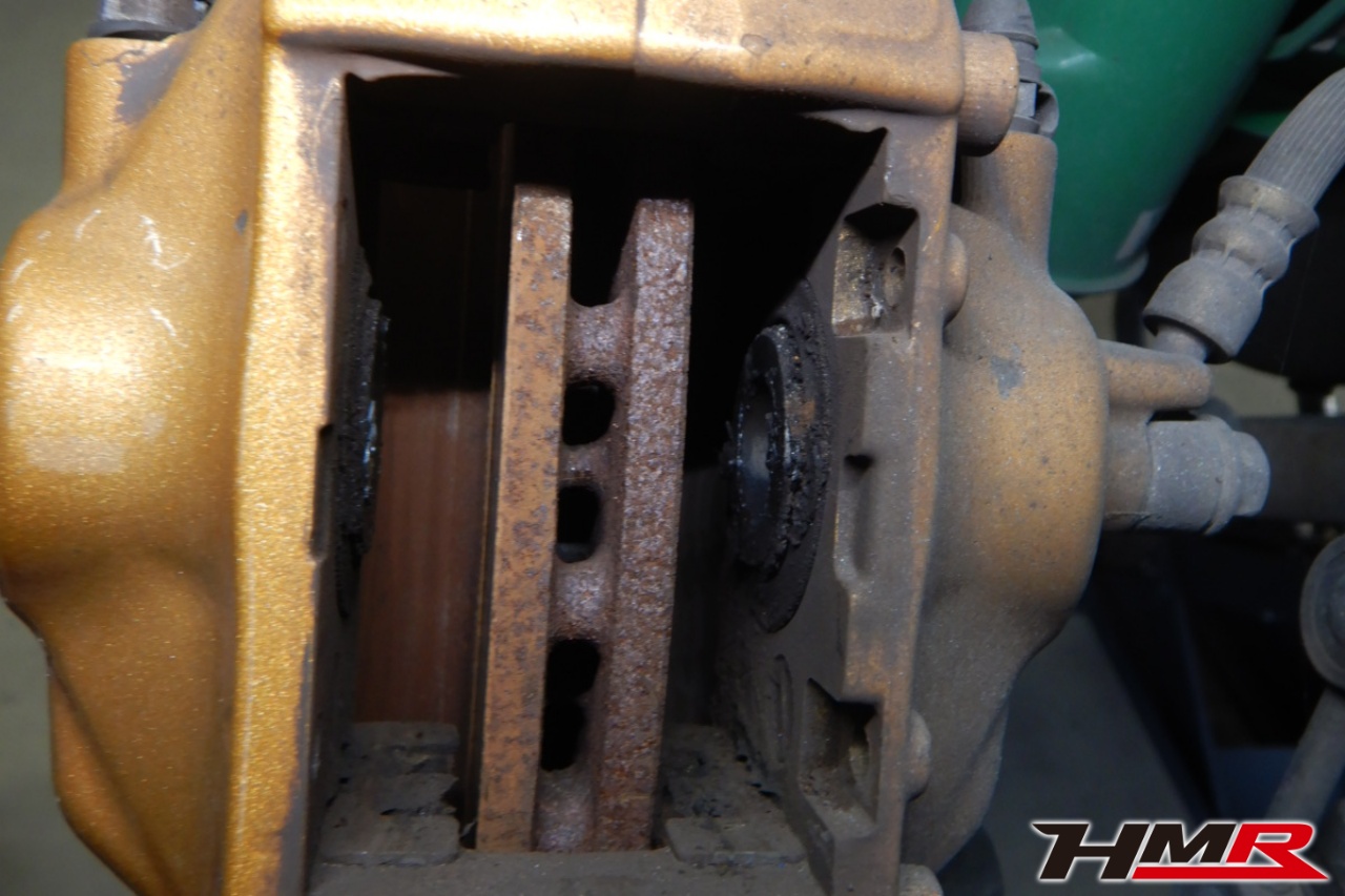 ブレーキキャリパーシール・キャリパーピストン、パッドの残量、ブレーキホースの劣化、ブレーキディスクローターの摩耗をチェックしました。特に問題ありませんでした。パッドの残量はおおおそフロント7.8mm・リア6.8mmでした。