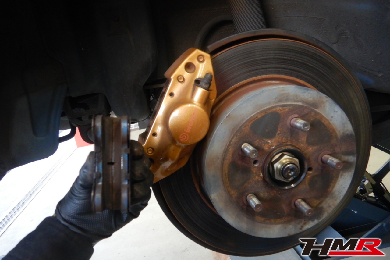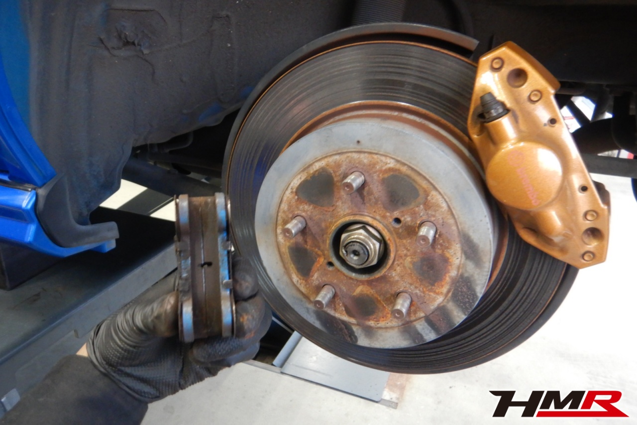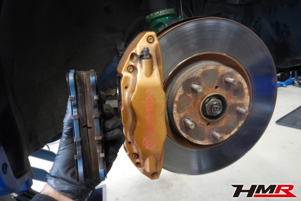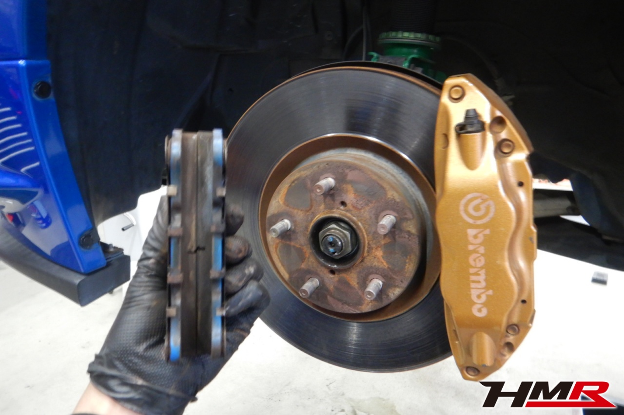 HMR(エイチエムアール)の秋山です。今回は純正17インチ TEIN車高調 ブレンボ装備のインプレッサWRX STI (GDB)の納車前点検整備を行いました。担当メカニックは手代木です。