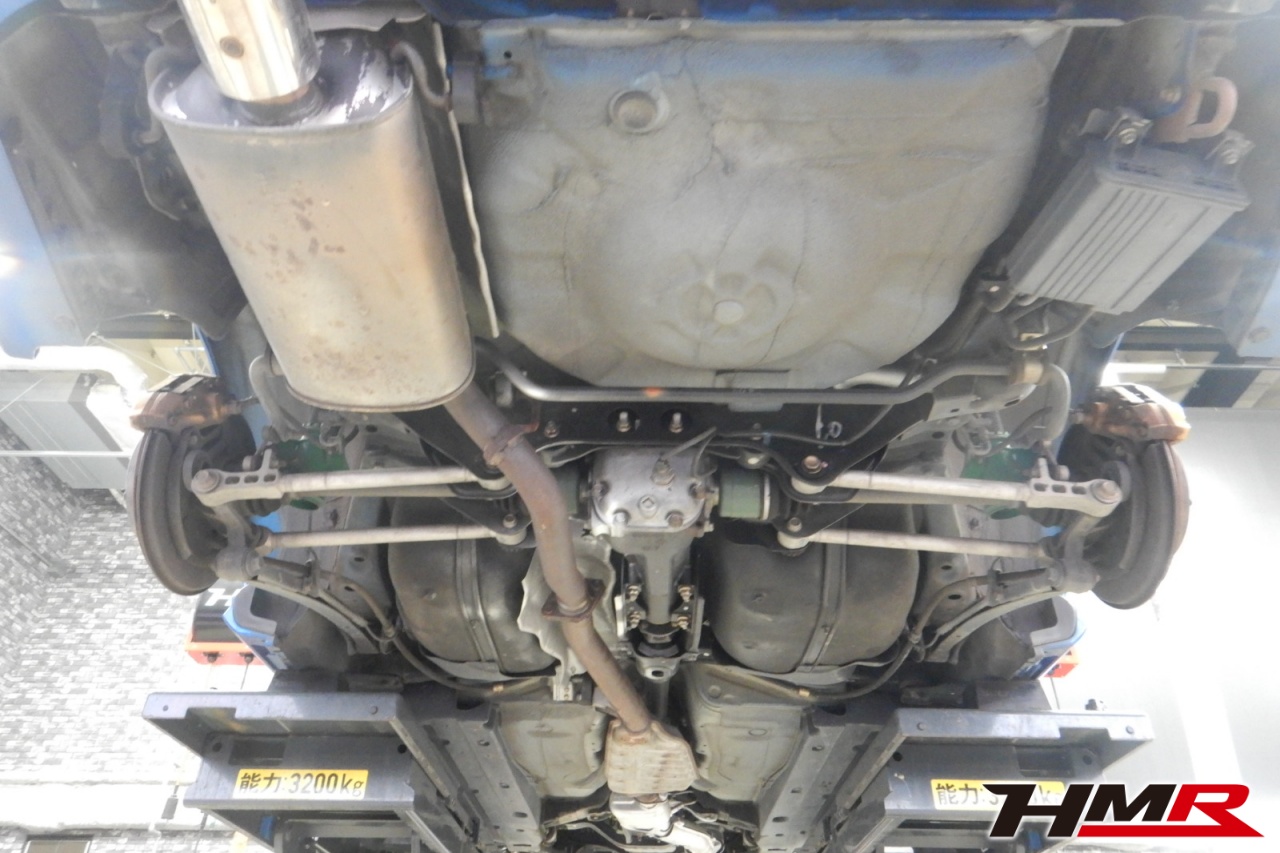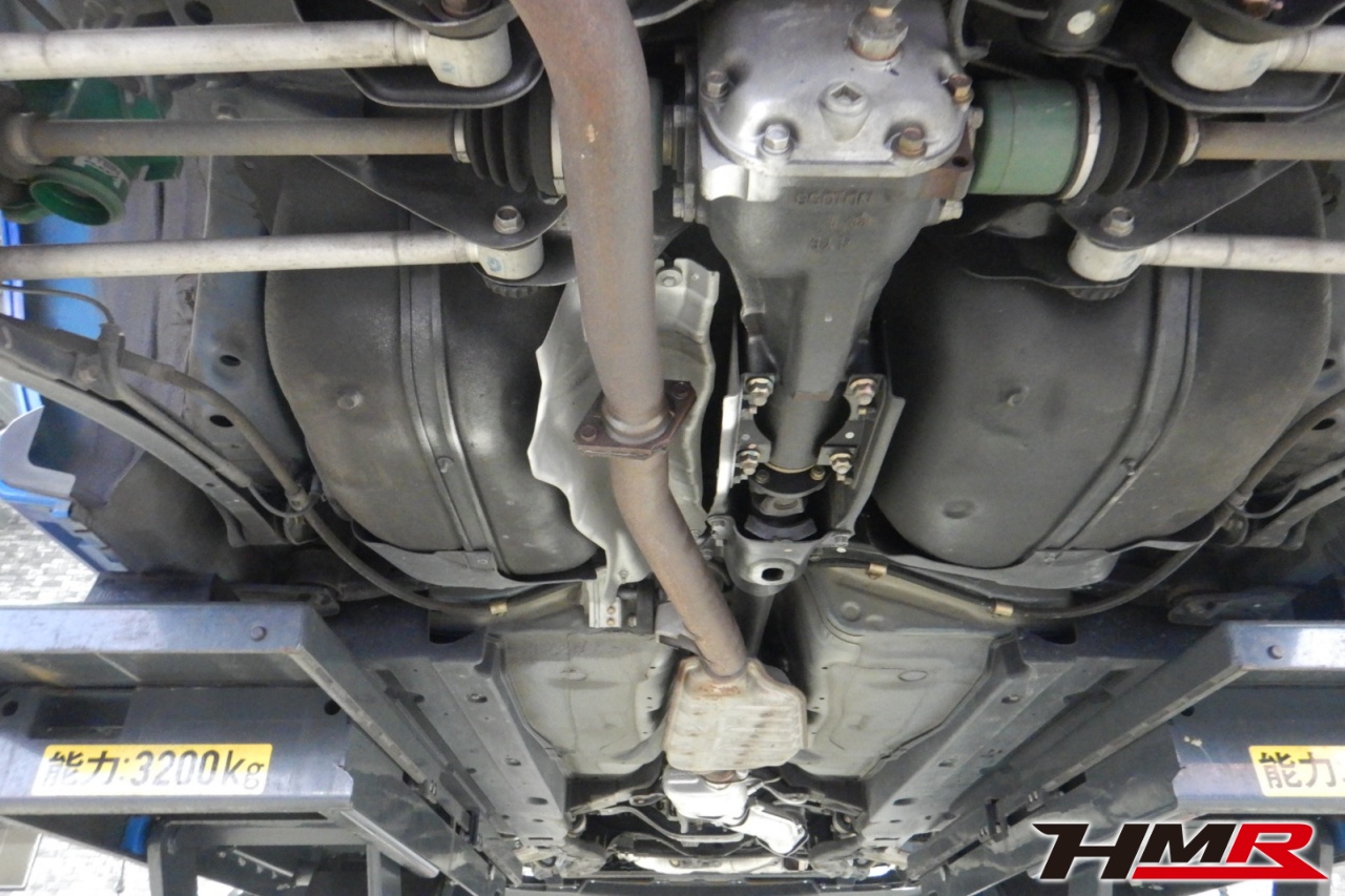 ハブベアリング・ボールジョイント、アーム・リンク類のガタ、ブッシュ・ブーツ類の劣化、エンジン・ミッション・デフからのオイル漏れと各マウント類、タイヤ溝の残量、空気圧の点検しました。特に問題ありませんでした。