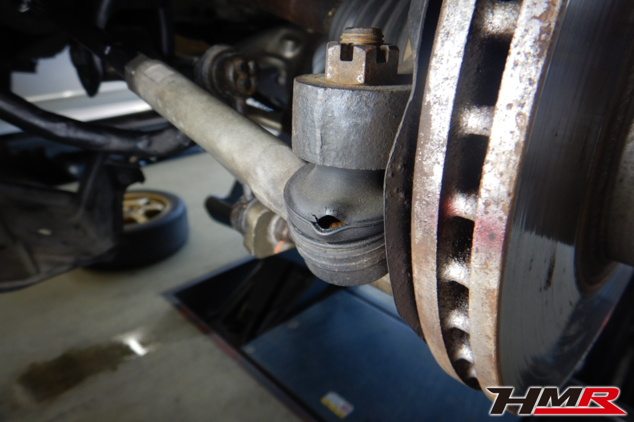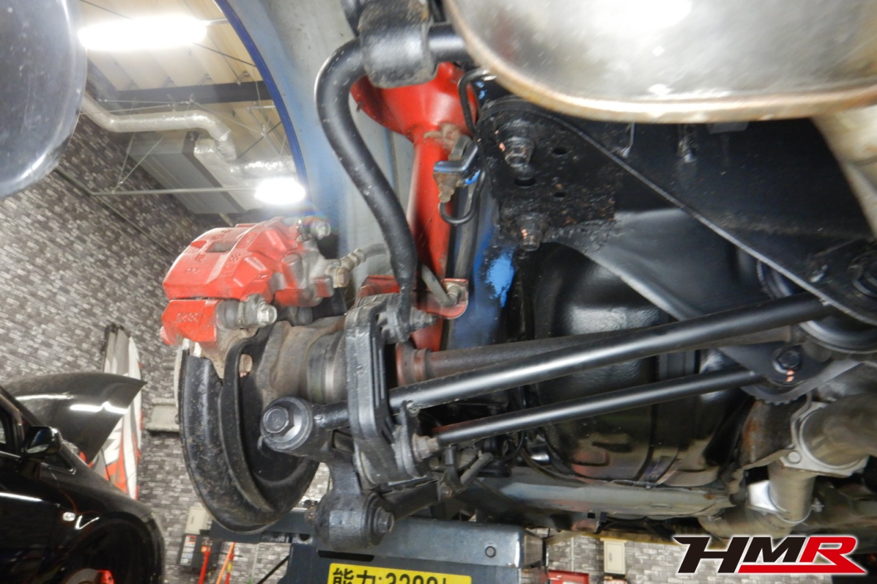 ハブベアリング・ボールジョイント、アーム・リンク類のガタ、ブッシュ・ブーツ類の劣化、エンジン・ミッション・デフからのオイル漏れと各マウント類、タイヤ溝の残量、空気圧の点検しました。左右タイロッドエンドブーツ、左ラックエンドを交換しました。