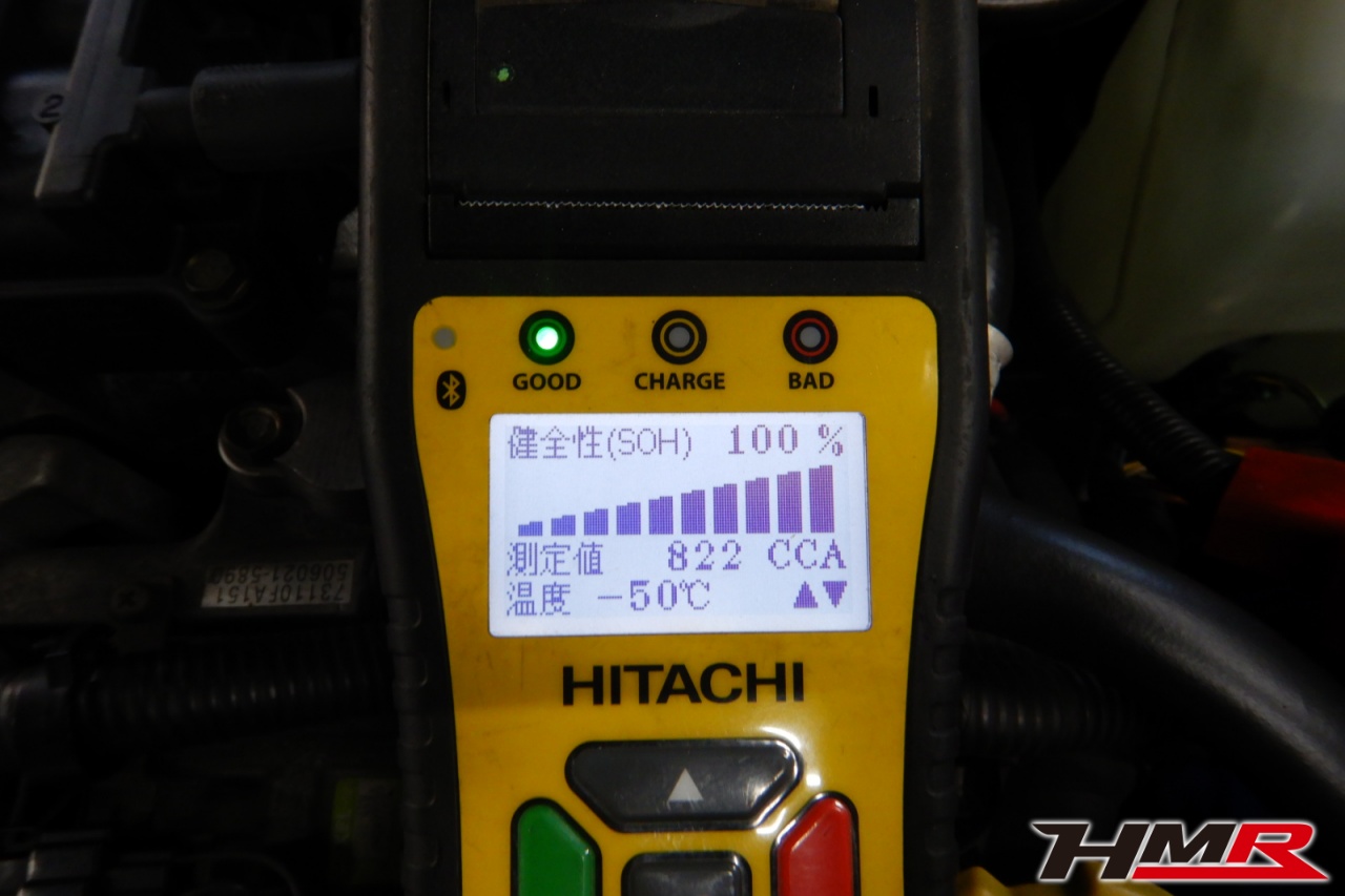 バッテリー、インテークホース、エアクリーナー、補機ベルト、プラグ、ブレーキ・クラッチマスターシリンダー、各部ゴム類の劣化、パッキン類・シール類からのオイル滲み・漏れ、ラジエターの劣化、冷却水漏れ、その他異音などをチェックしました。特に問題ありませんでした。