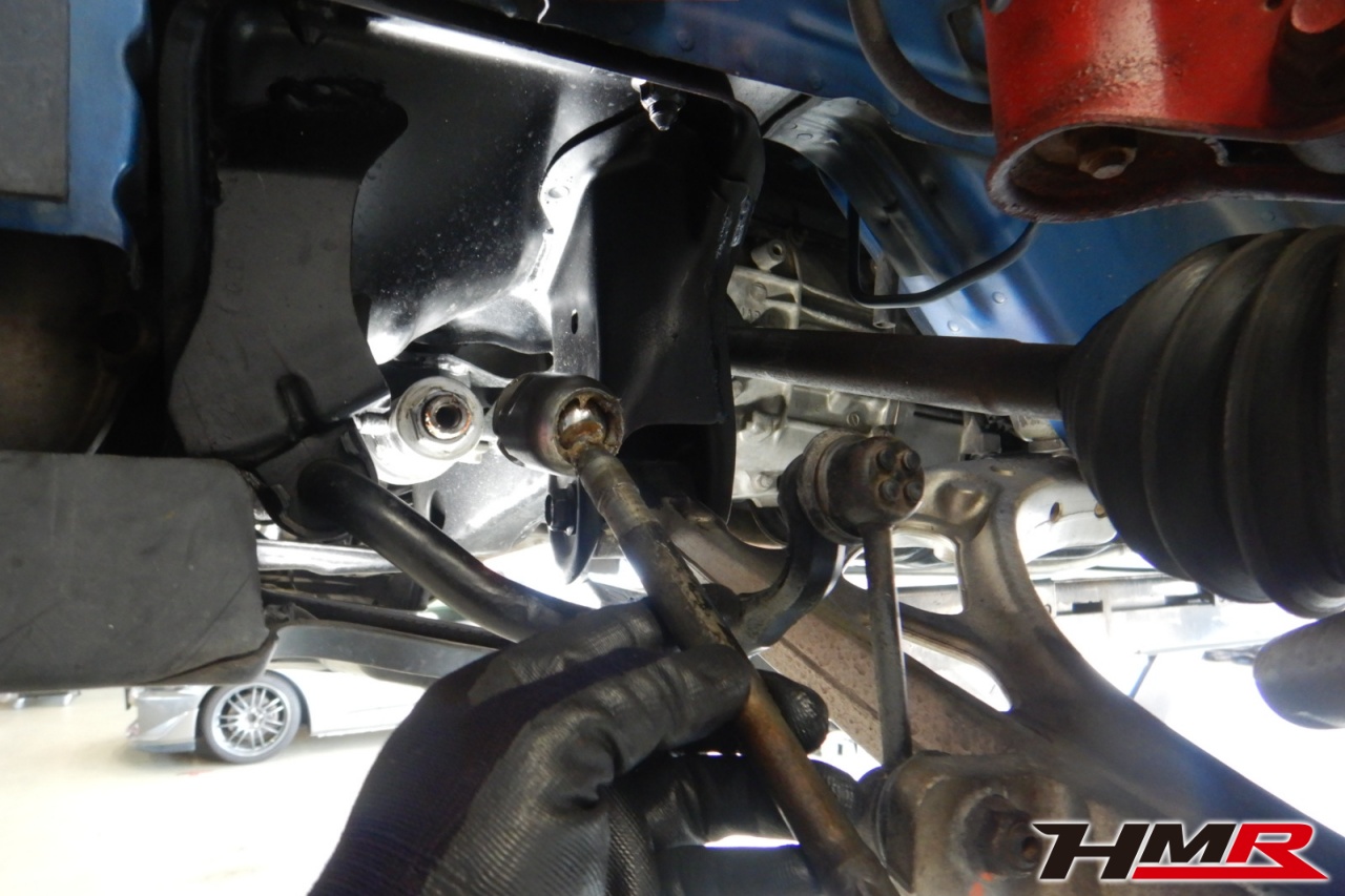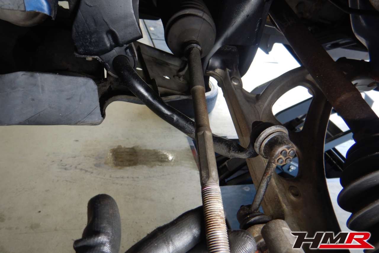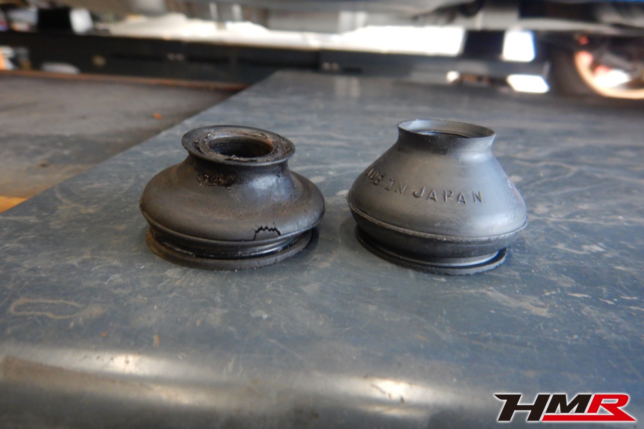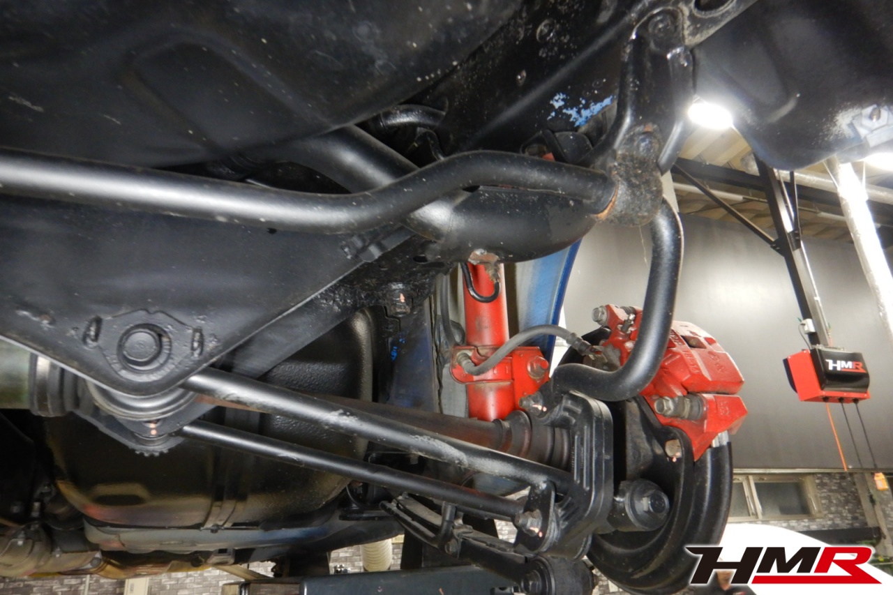 ハブベアリング・ボールジョイント、アーム・リンク類のガタ、ブッシュ・ブーツ類の劣化、エンジン・ミッション・デフからのオイル漏れと各マウント類、タイヤ溝の残量、空気圧の点検しました。左右タイロッドエンドブーツ、左ラックエンドを交換しました。