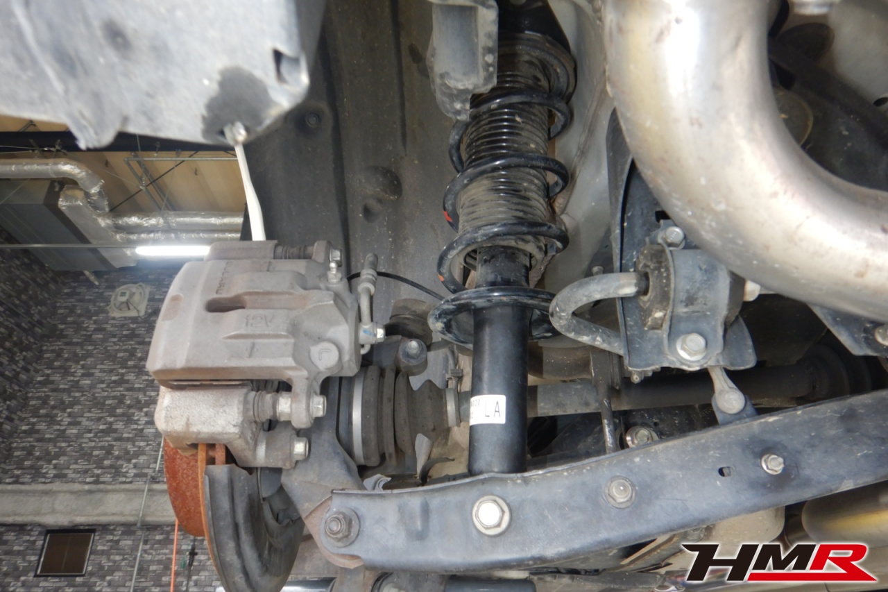 ハブベアリング・ボールジョイント、アーム・リンク類のガタ、ブッシュ・ブーツ類の劣化、エンジン・ミッション・デフからのオイル漏れと各マウント類、タイヤ溝の残量、空気圧の点検をしました。左右フロントロアアームブッシュにヒビが見られましたので交換しました。