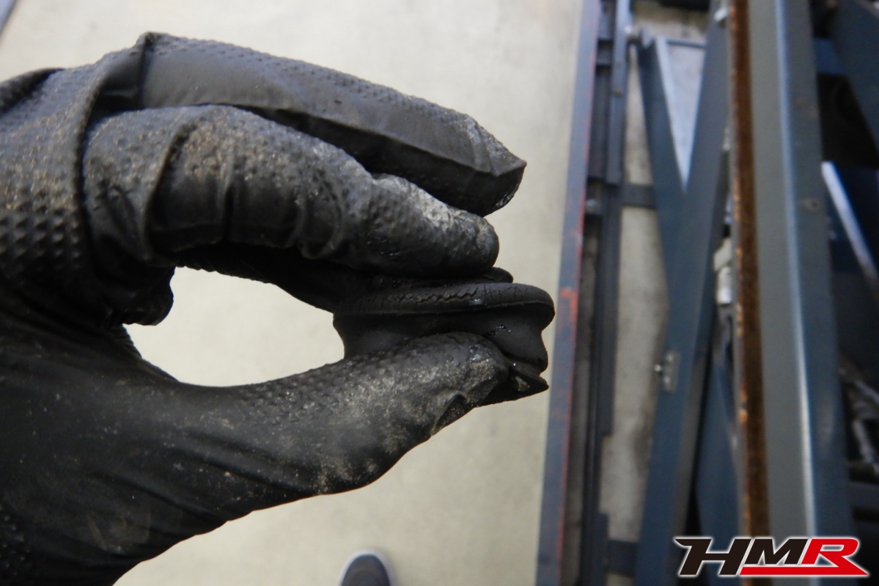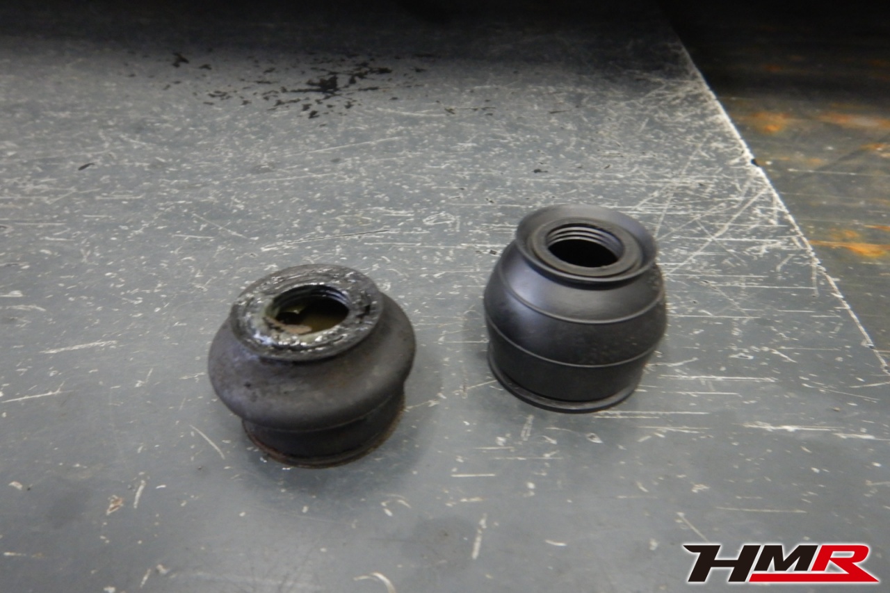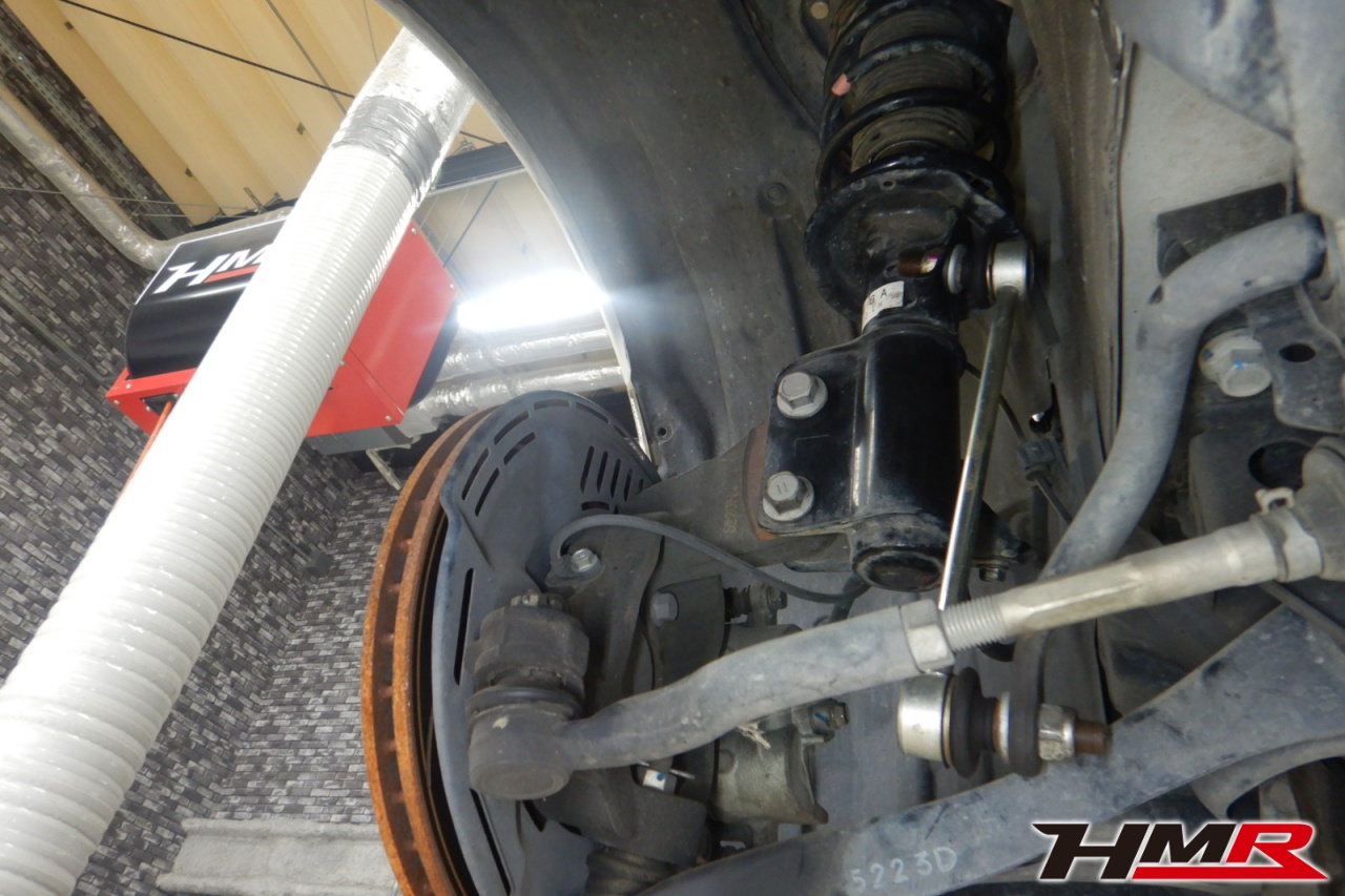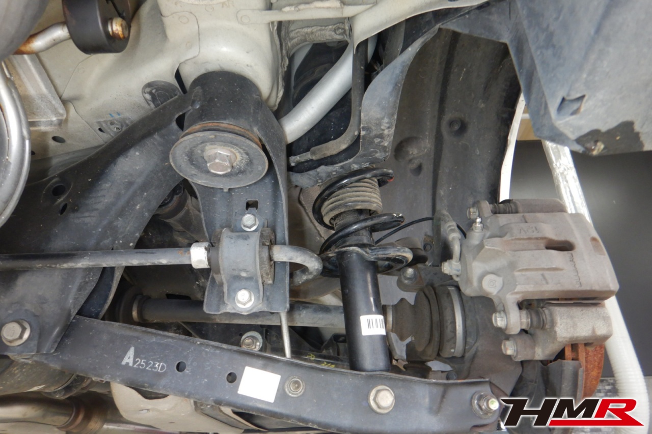 ハブベアリング・ボールジョイント、アーム・リンク類のガタ、ブッシュ・ブーツ類の劣化、エンジン・ミッション・デフからのオイル漏れと各マウント類、タイヤ溝の残量、空気圧の点検をしました。左右フロントロアアームブッシュにヒビが見られましたので交換しました。