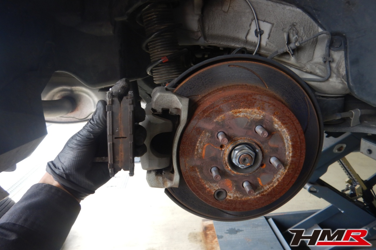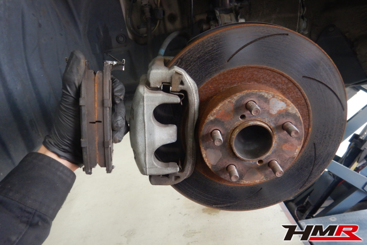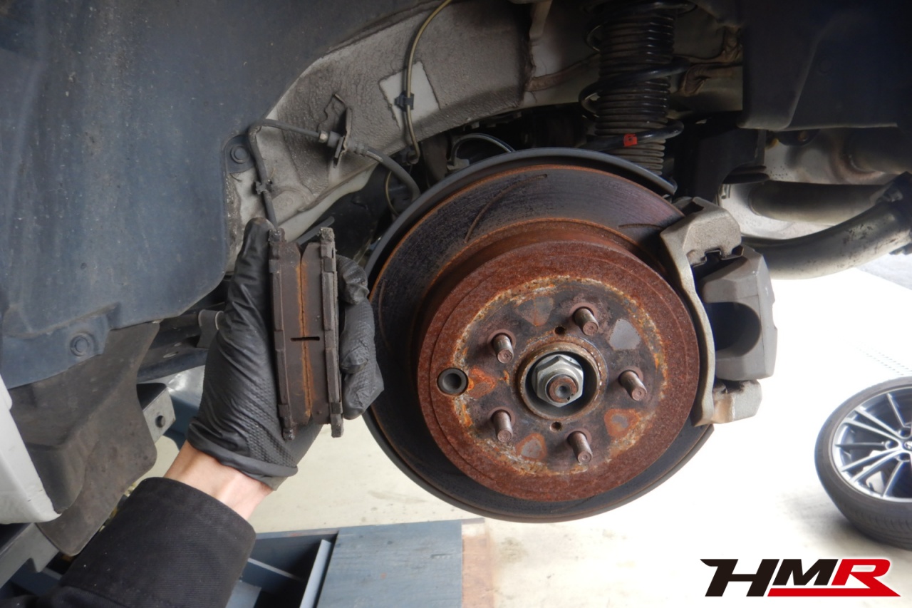 ブレーキキャリパーシール・キャリパーピストン、パッドの残量、ブレーキホースの劣化、ブレーキディスクローターの摩耗をチェックし、特に問題ありませんでした。パッドの残量はフロント8.1mm・リア9.1mmでした。