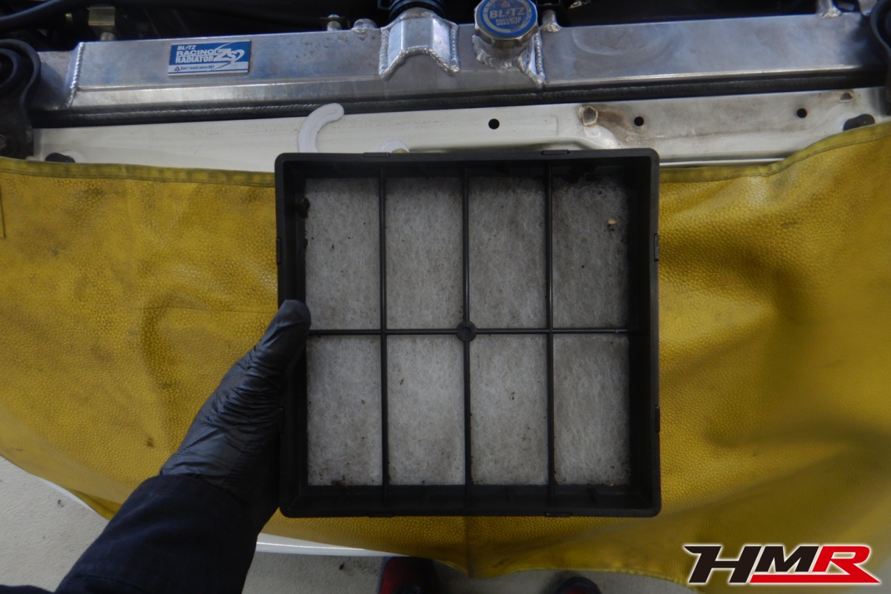 バッテリー、インテークホース、エアクリーナー、補機ベルト、プラグ、ブレーキ・クラッチマスターシリンダー、各部ゴム類の劣化、パッキン類・シール類からのオイル滲み・漏れ、ラジエターの劣化、冷却水漏れ、その他異音などをチェックしました。エアクリーナーが少し汚れていましたが早急に交換する必要はないため乗っていく中での交換をおすすめします。