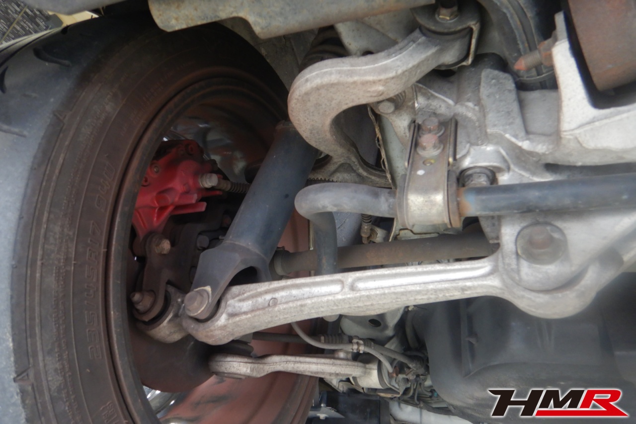 ハブベアリング・ボールジョイント、アーム・リンク類のガタ、ブッシュ・ブーツは類の劣化、エンジン・ミッション・デフからのオイル漏れと各マウント類、タイヤ溝の残量、空気圧の点検しました。タイヤからワイヤーが見えていたため交換しました。