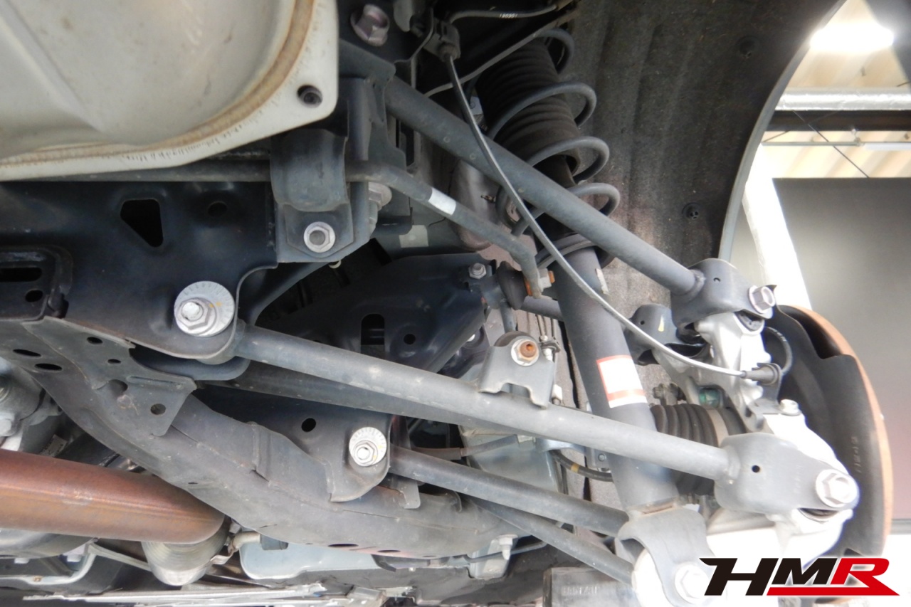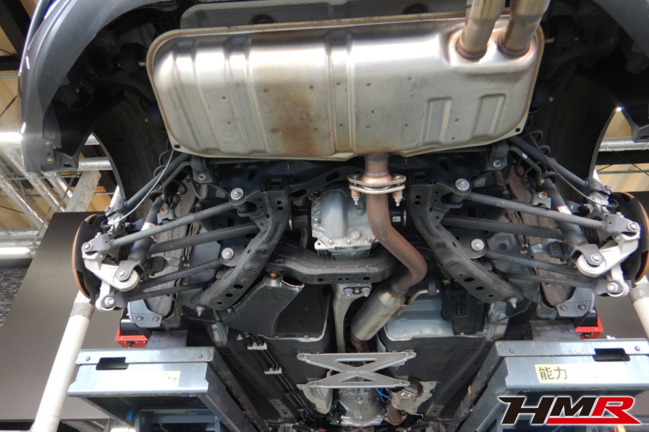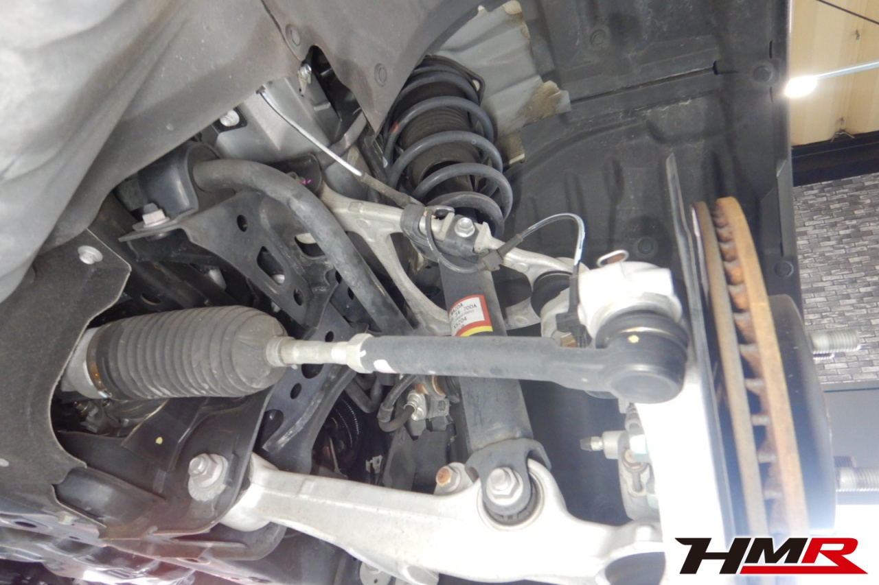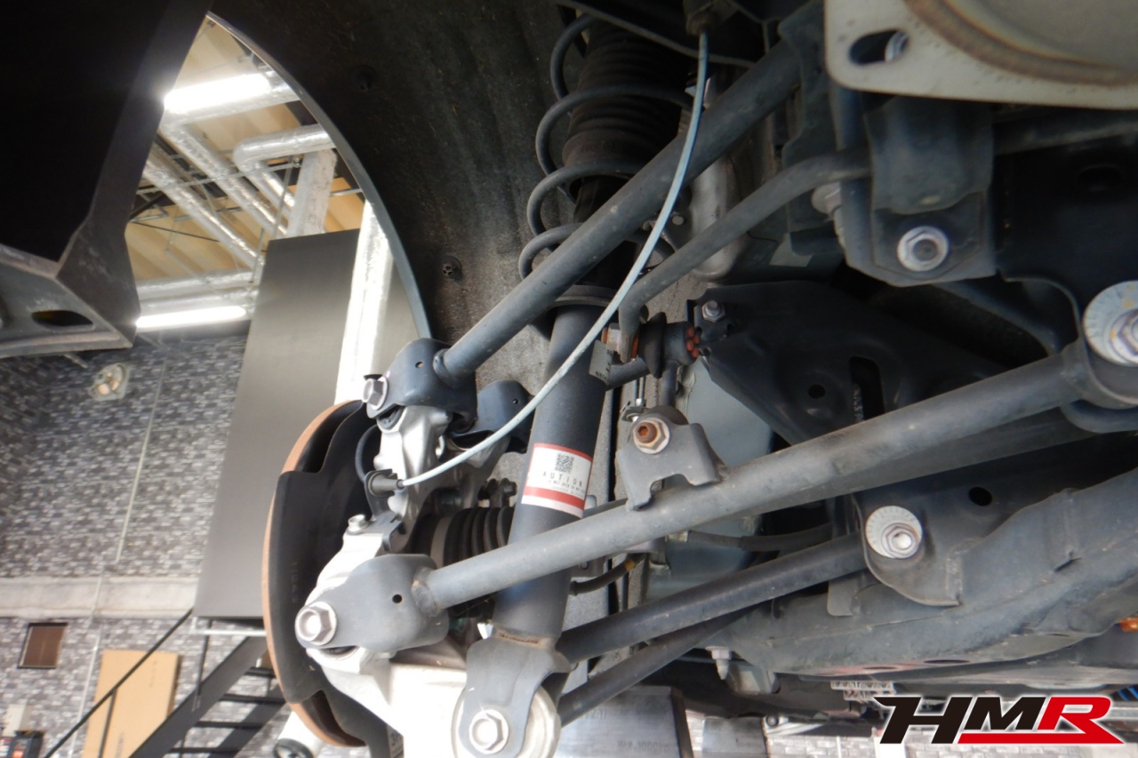 ハブベアリング・ボールジョイント、アーム・リンク類のガタ、ブッシュ・ブーツ類の劣化、エンジン・ミッション・デフからのオイル漏れと各マウント類、タイヤ溝の残量、空気圧の点検しました。特に問題ありませんでした。