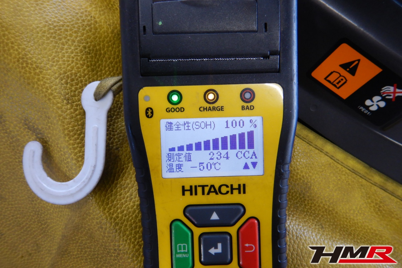 バッテリー、インテークホース、エアクリーナー、補機ベルト、プラグ、ブレーキ・クラッチマスターシリンダー、各部ゴム類の劣化、パッキン類・シール類からのオイル滲み・漏れ、ラジエターの劣化、冷却水漏れ、その他異音等をチェックしました。特に問題ありませんでした。