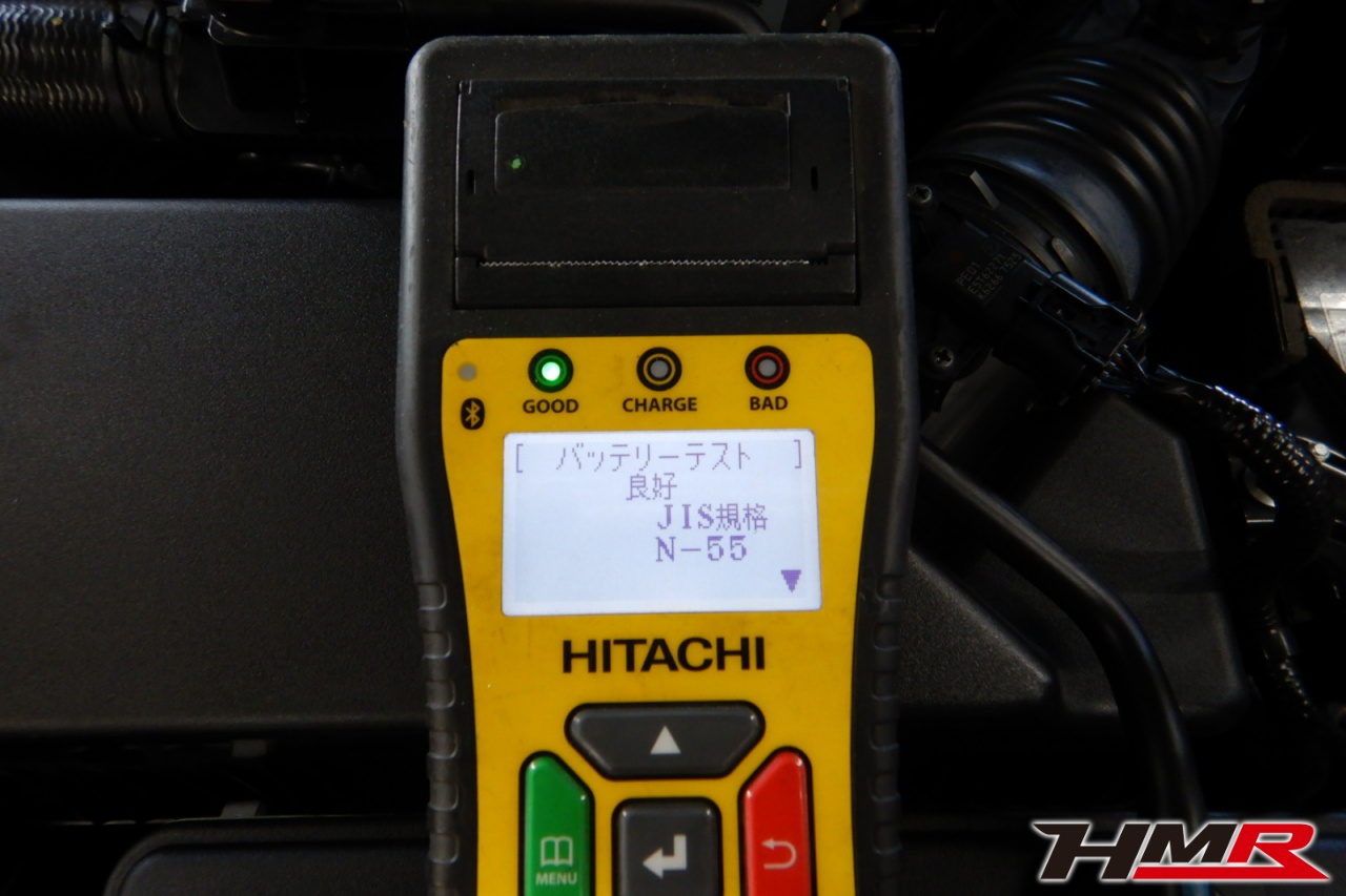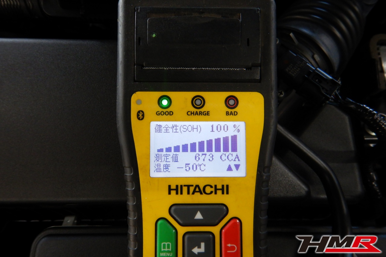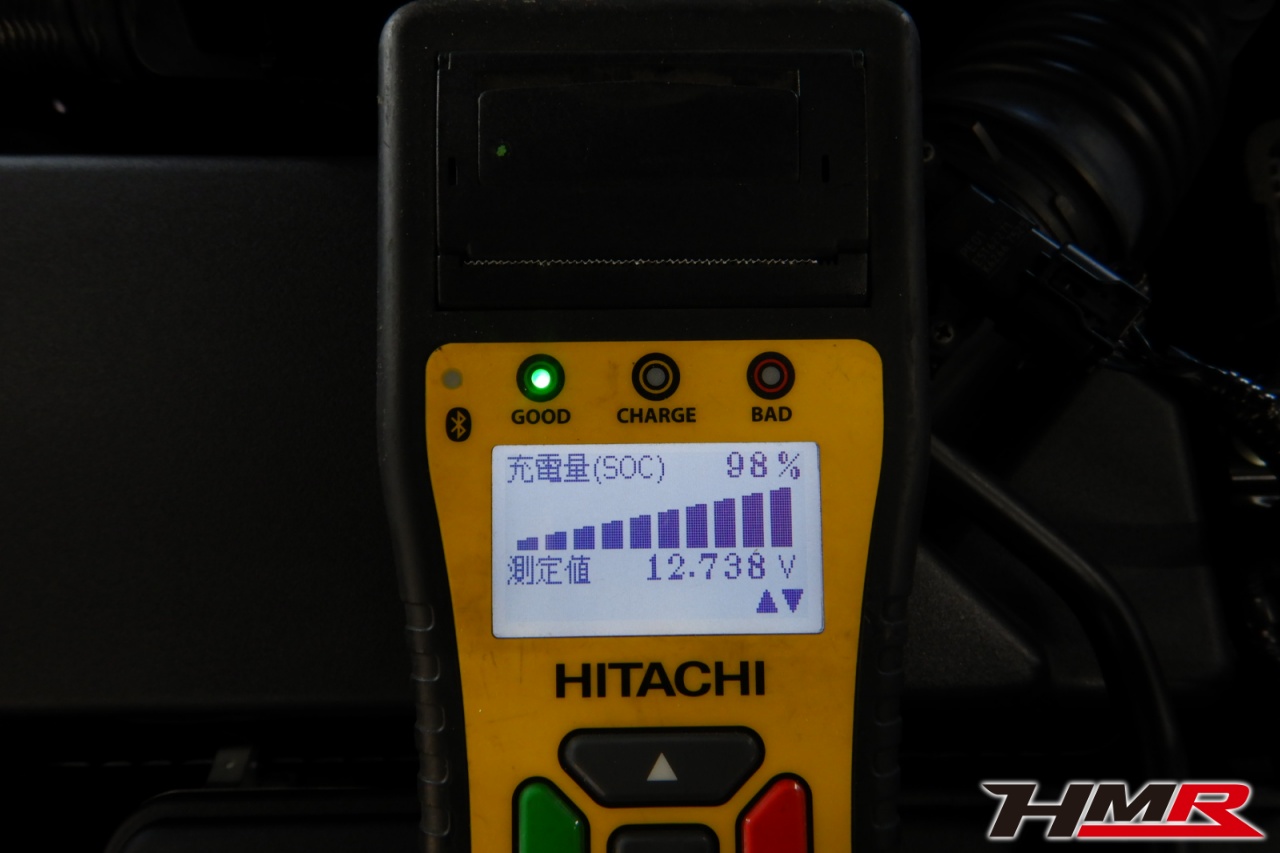バッテリー、インテークホース、エアクリーナー、補機ベルト、プラグ、ブレーキ・クラッチマスターシリンダー、各部ゴム類の劣化、パッキン類・シール類からのオイル滲み・漏れ、ラジエターの劣化、冷却水漏れ、その他異音などをチェックしました。バッテリーが弱っていましたので充電しました。