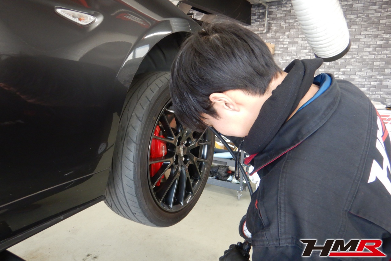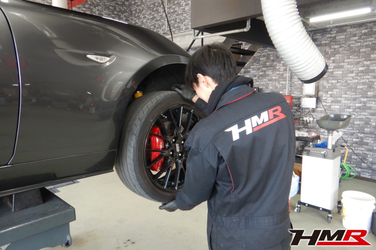 HMR(エイチエムアール)の秋山です。今回はオプションBBS17インチ ブレンボ装備のロードスター(NDERC)の納車前点検整備を行いました。担当メカニックは大川です。
