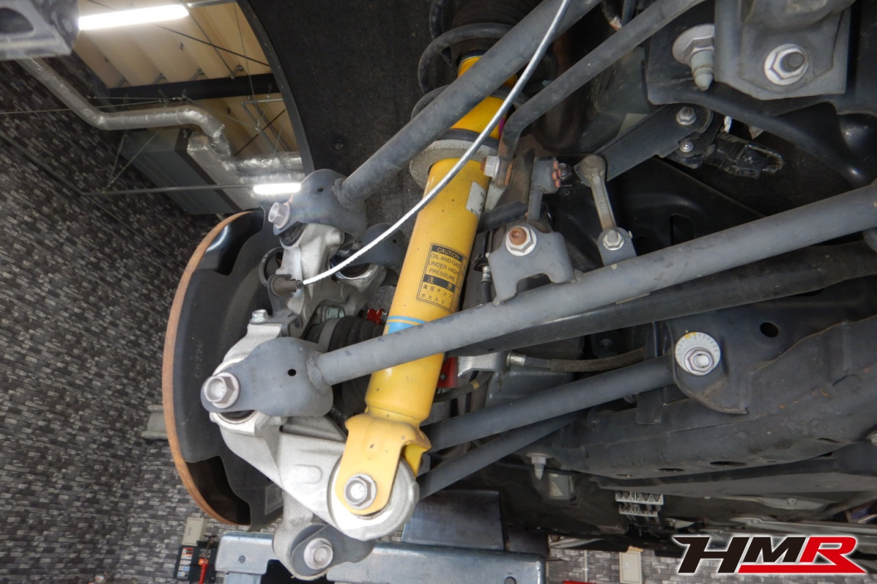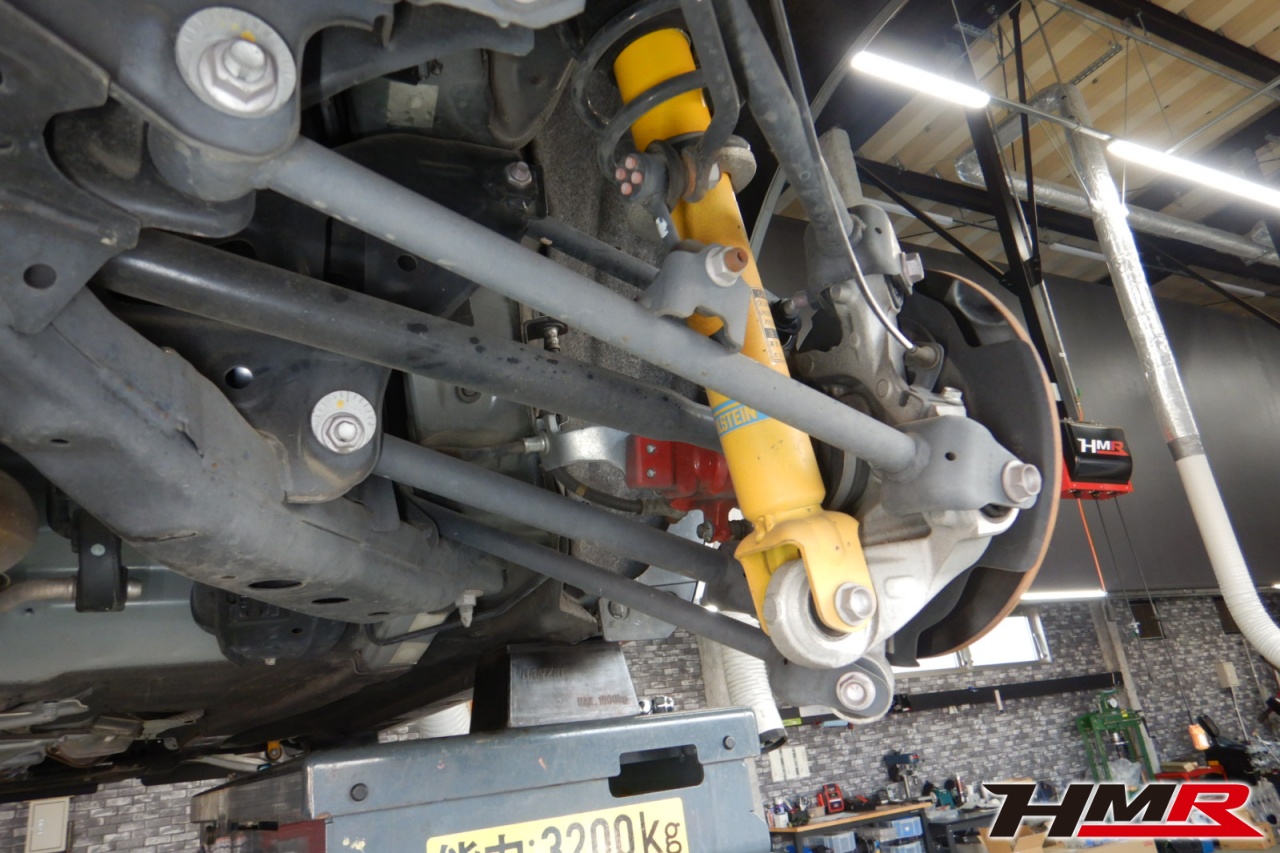 ハブベアリング・ボールジョイント、アーム・リンク類のガタ、ブッシュ・ブーツ類の劣化、エンジン・ミッション・デフからのオイル漏れと各マウント類、タイヤ溝の残量、空気圧の点検しました。タイヤにヒビが見られるのと残り溝も少なくなってきていますので早めの交換をおすすめします。
