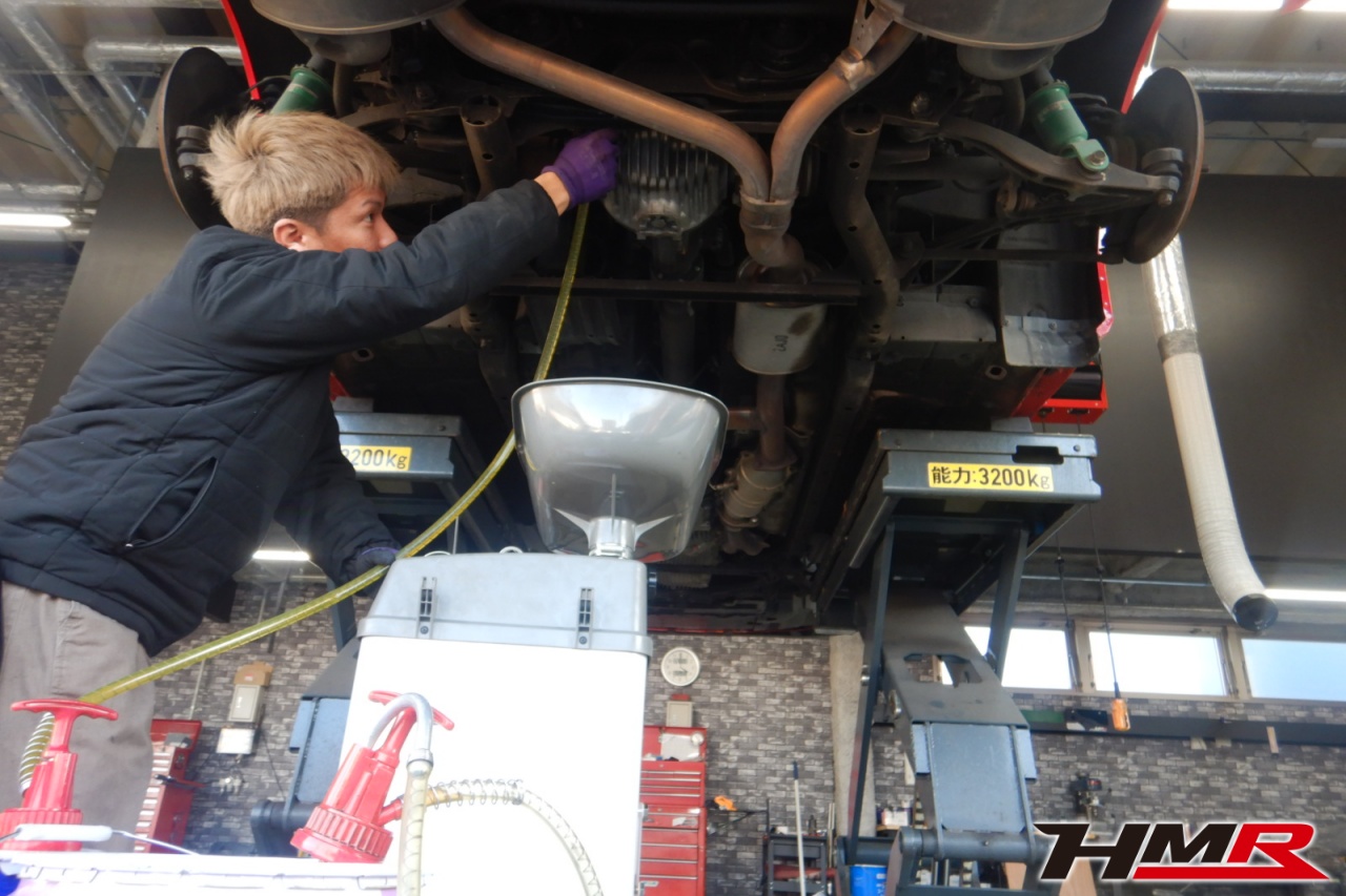 ハブベアリング・ボールジョイント、アーム・リンク類のガタ、ブッシュ・ブーツ類の劣化、エンジン・ミッション・デフからのオイル漏れと各マウント類、タイヤ溝の残量、空気圧の点検を行いました。特に問題ありませんでした。