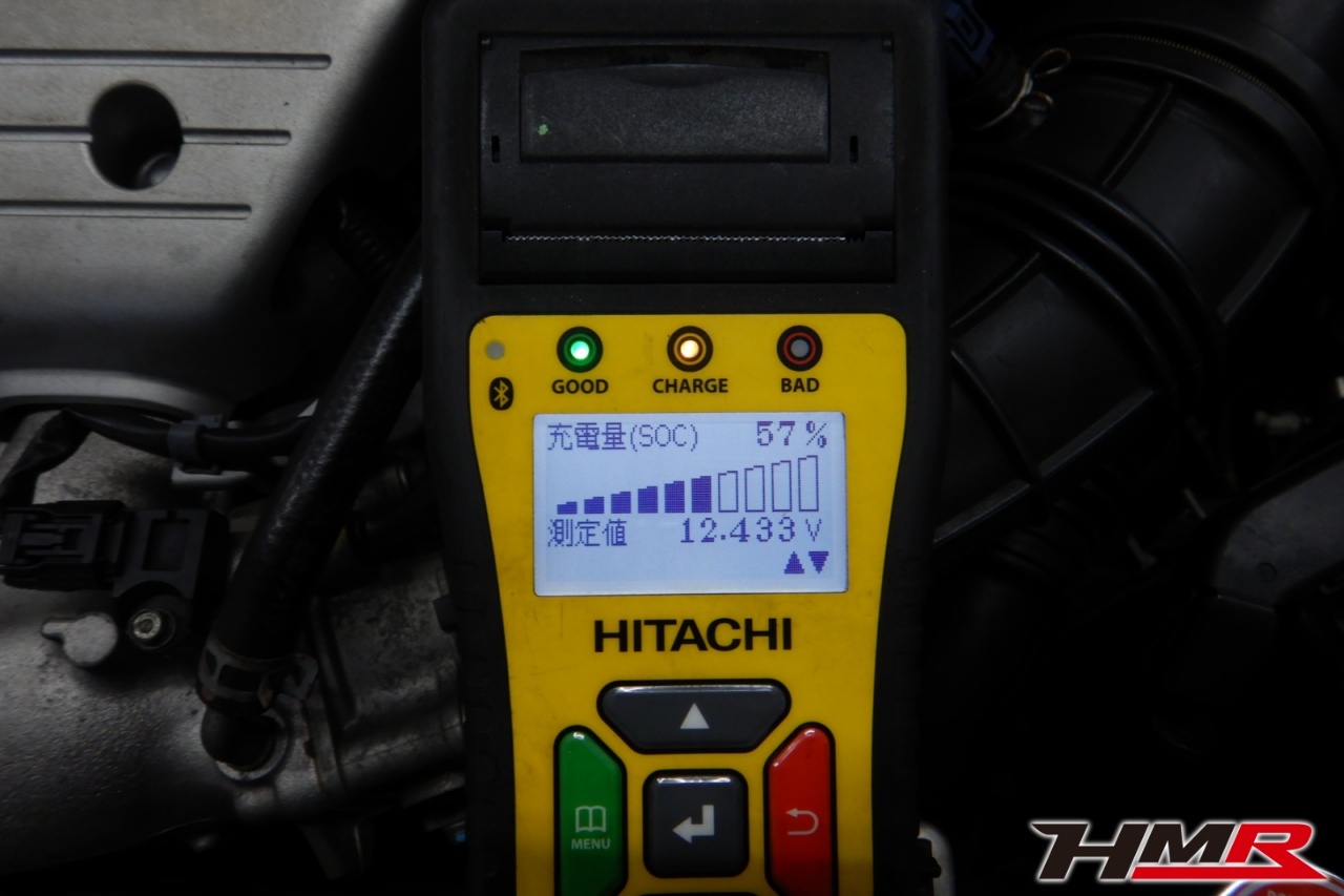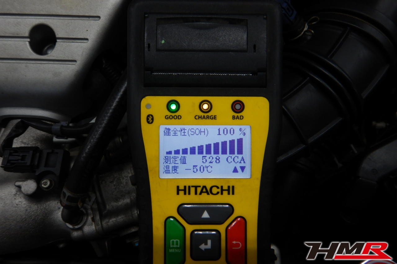 バッテリー、インテークホース、エアクリーナー、補機ベルト、プラグ、ブレーキ・クラッチマスターシリンダー、各部ゴム類の劣化、パッキン類・シール類からのオイル滲み・漏れ、ラジエターの劣化、冷却水漏れ、その他異音などをチェックしました。バッテリーが弱っていましたので充電しました。
