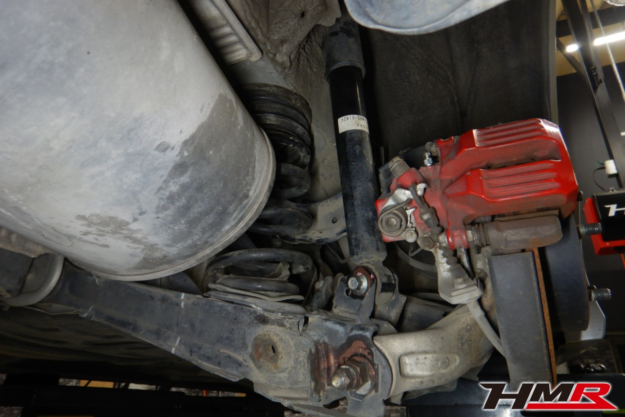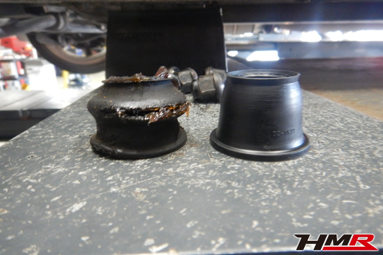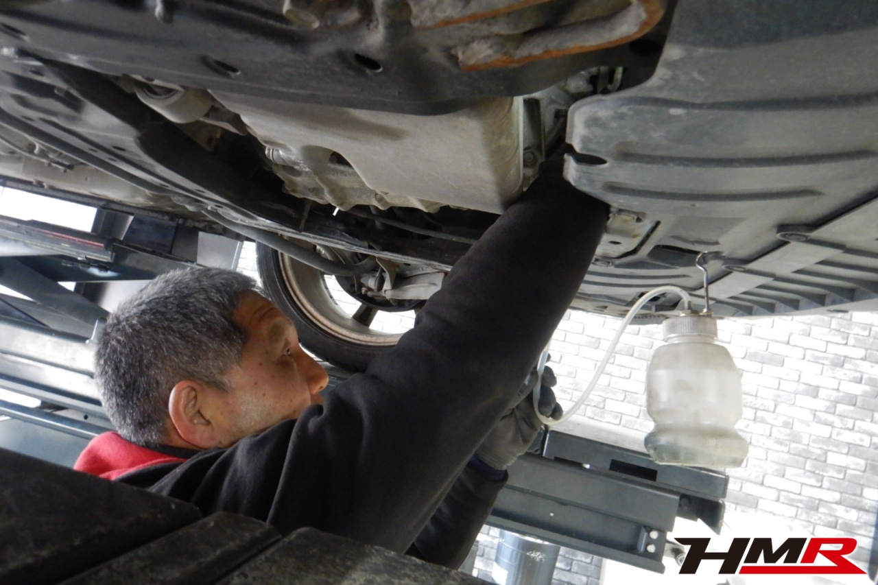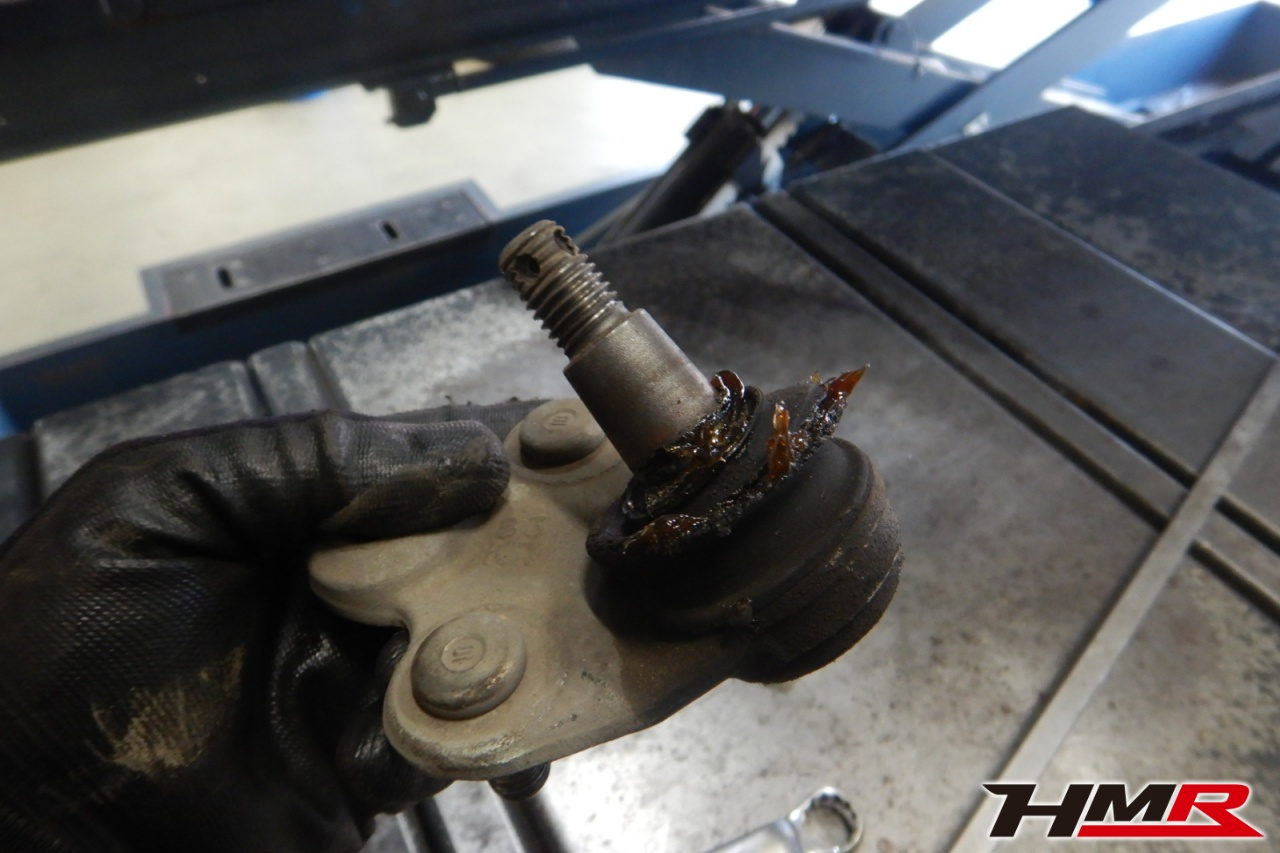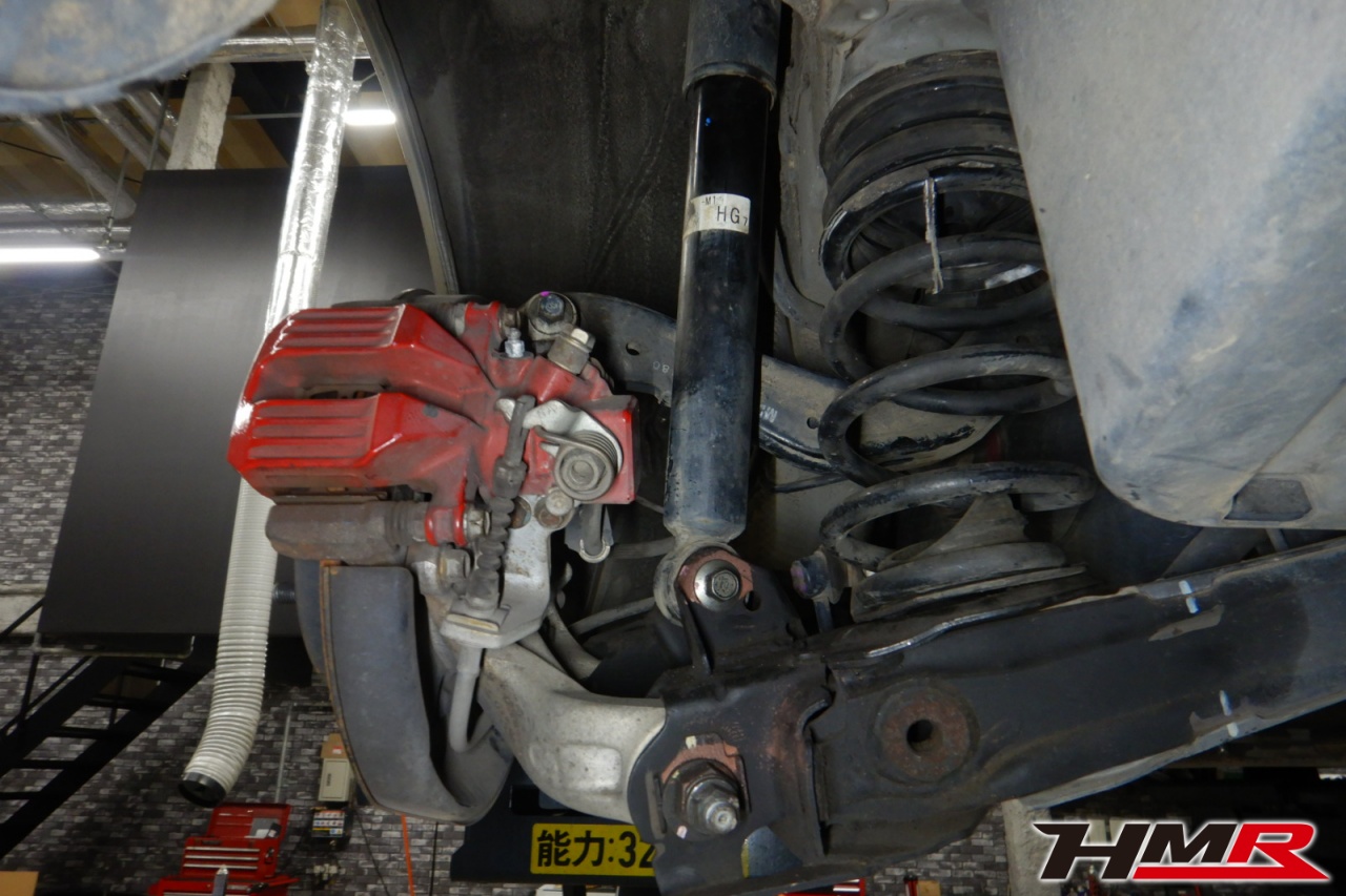 ハブベアリング・ボールジョイント、アーム・リンク類のガタ、ブッシュ・ブーツは類の劣化、エンジン・ミッション・デフからのオイル漏れと各マウント類、タイヤ溝の残量、空気圧の点検しました。左側フロントロアアームブーツが切れていましたので交換しました。また左側タイロッドエンドブーツ、右側フロントロアアームブーツ、左右ロアアームブッシュにヒビが見られましたので今後乗っていく中で交換をおすすめします。
