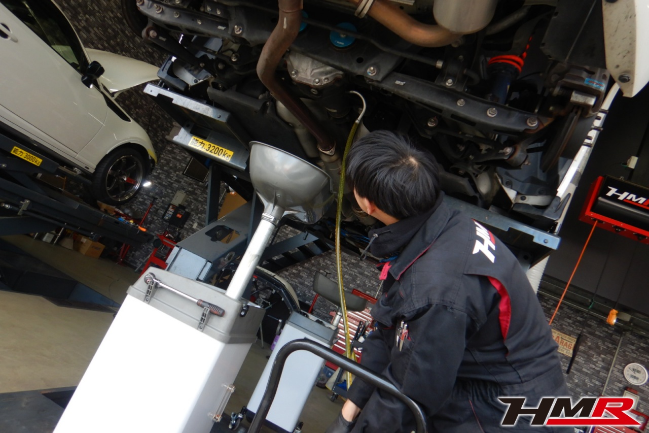 エンジンオイル、オイルフィルター、オイルフィルターセンターボルト、ミッションオイル、デフオイル、ブレーキフルードを交換しました。エンジンオイルはWAKO’SプロステージS 0W-30、デフオイルはWAKO’S ギアオイルMG-90に交換しています。