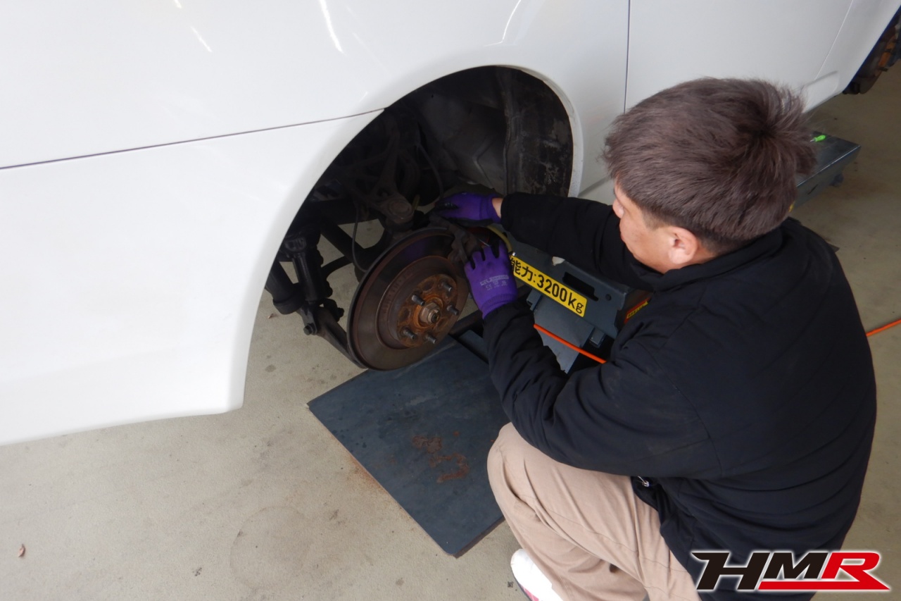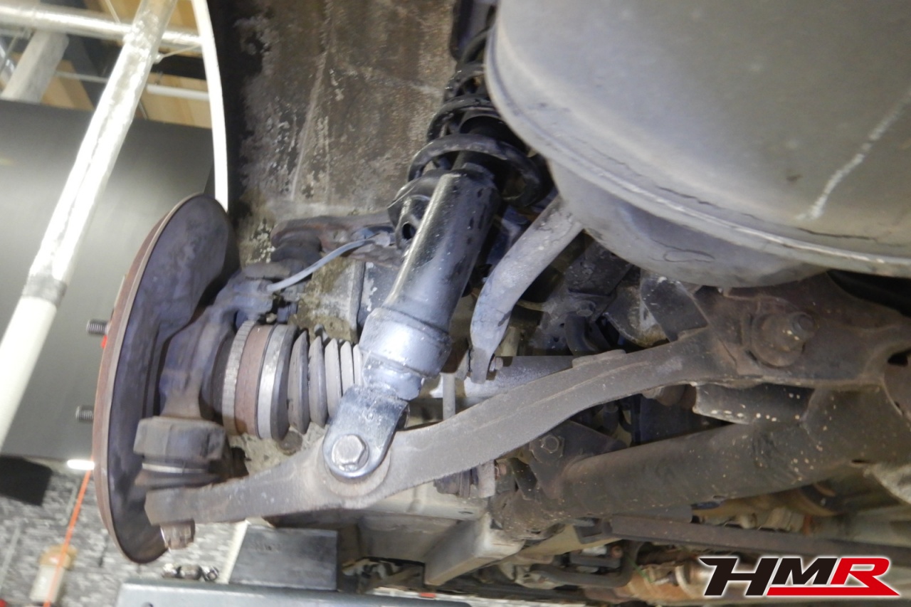 ハブベアリング・ボールジョイント、アーム・リンク類のガタ、ブッシュ・ブーツ類の劣化、エンジン・ミッション・デフからのオイル漏れと各マウント類、タイヤ溝の残量、空気圧の点検しました。前後左側スタビリンクブーツが切れていましたので交換しました。