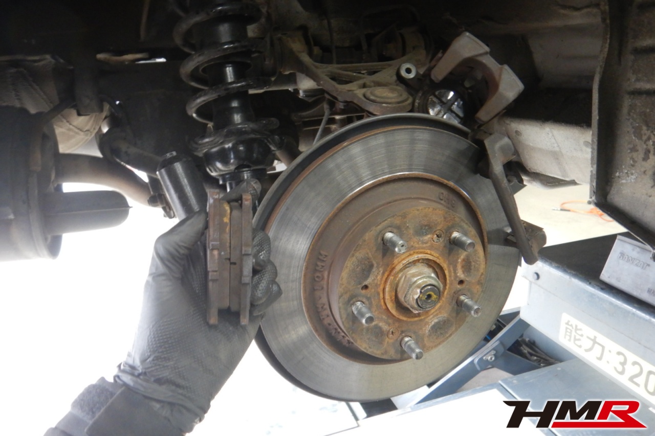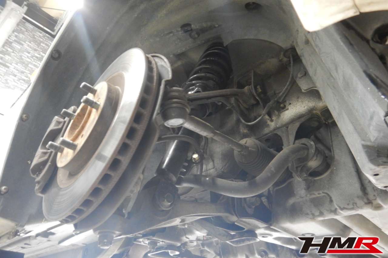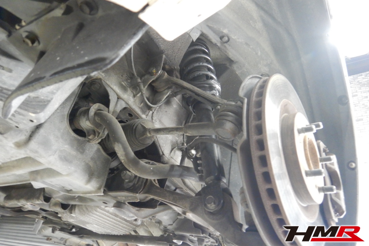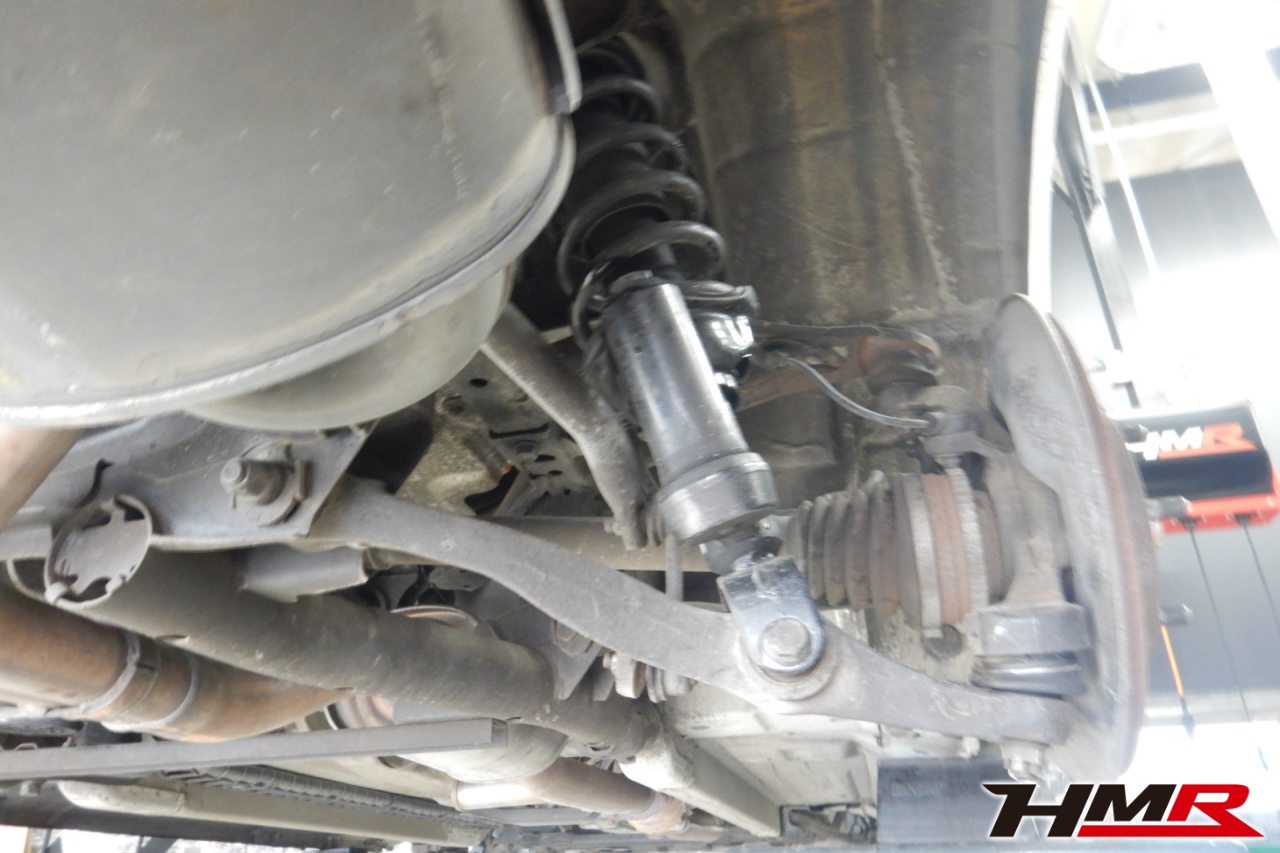 ハブベアリング・ボールジョイント、アーム・リンク類のガタ、ブッシュ・ブーツ類の劣化、エンジン・ミッション・デフからのオイル漏れと各マウント類、タイヤ溝の残量、空気圧の点検しました。前後左側スタビリンクブーツが切れていましたので交換しました。