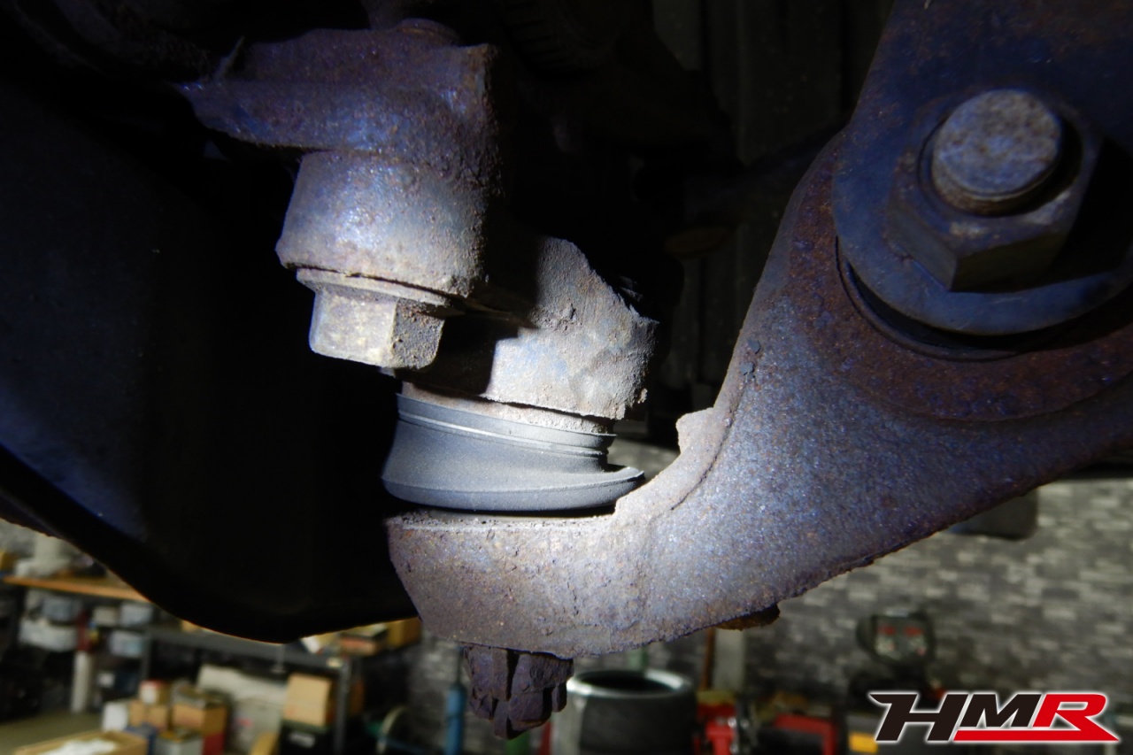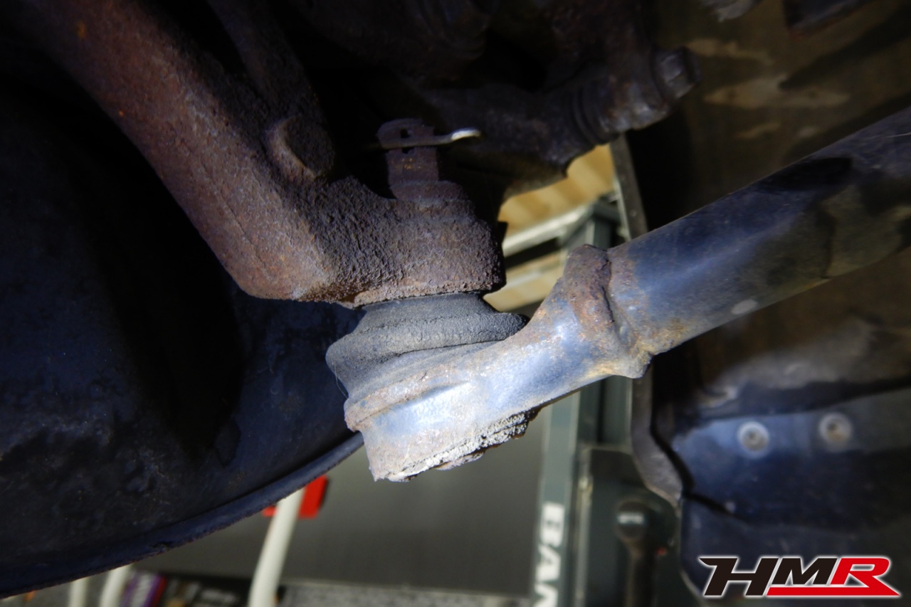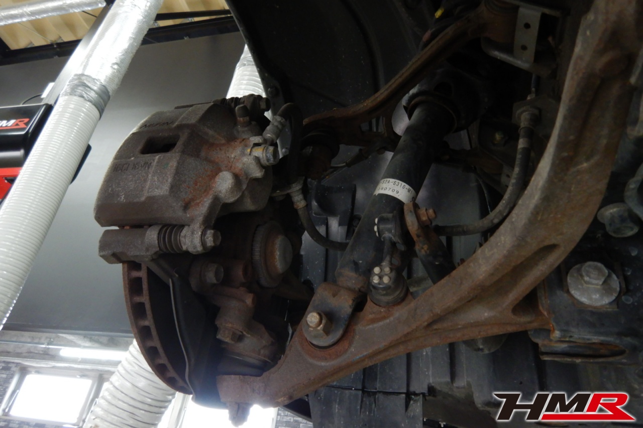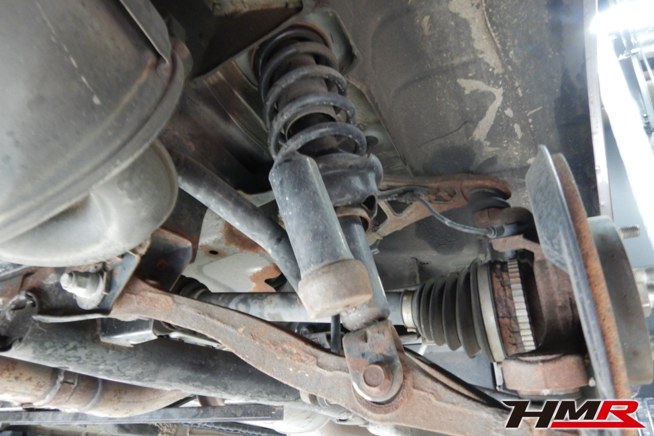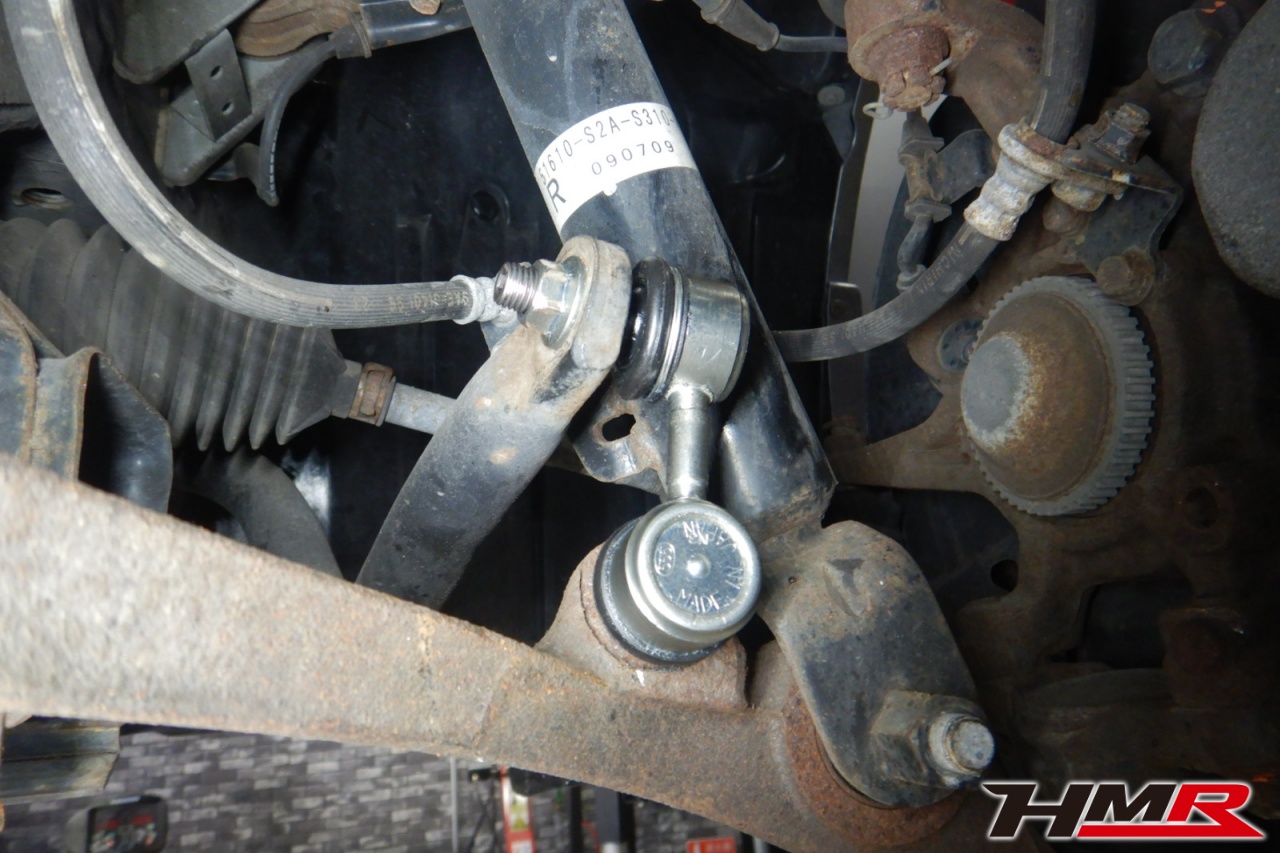 ハブベアリング・ボールジョイント、アーム・リンク類のガタ、ブッシュ・ブーツ類の劣化、エンジン・ミッション・デフからのオイル漏れと各マウント類、タイヤ溝の残量、空気圧の点検を行いました。フロント右側スタビリンクが劣化していたため交換しました。またフロントロアアームにヒビが見られましたがすぐに交換する必要はなかったため今後交換をおすすめします。