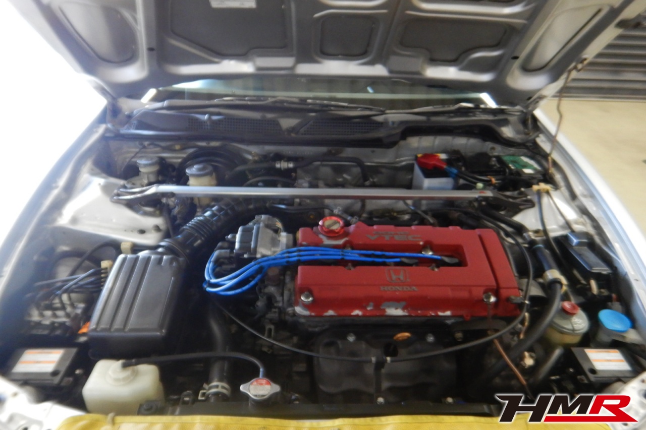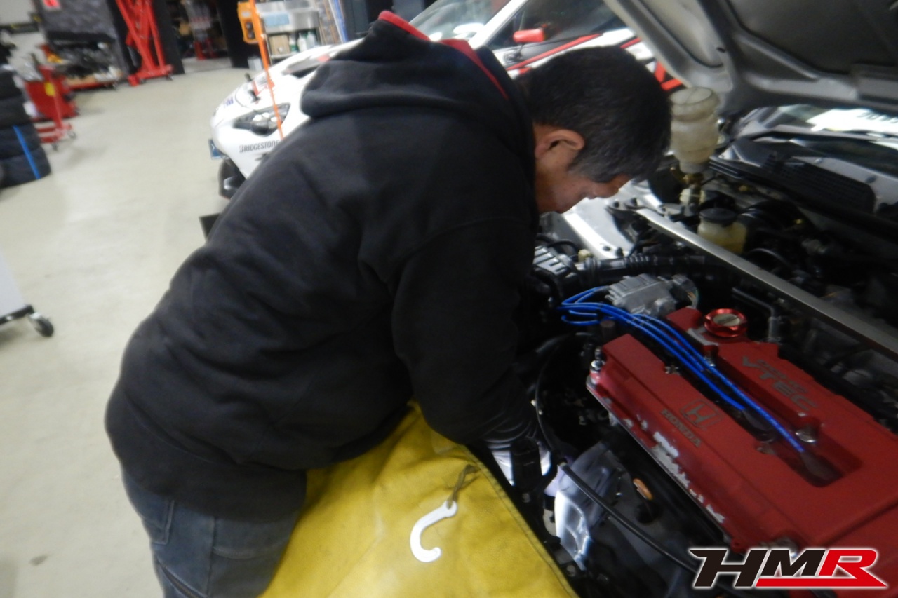 HMR(エイチエムアール)の秋山です。今回はタイミングベルト交換済 スプーンマフラー装着のインテグラタイプR(DB8)の納車前点検整備を行いました。担当メカニックは手代木です。