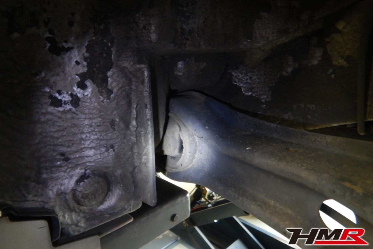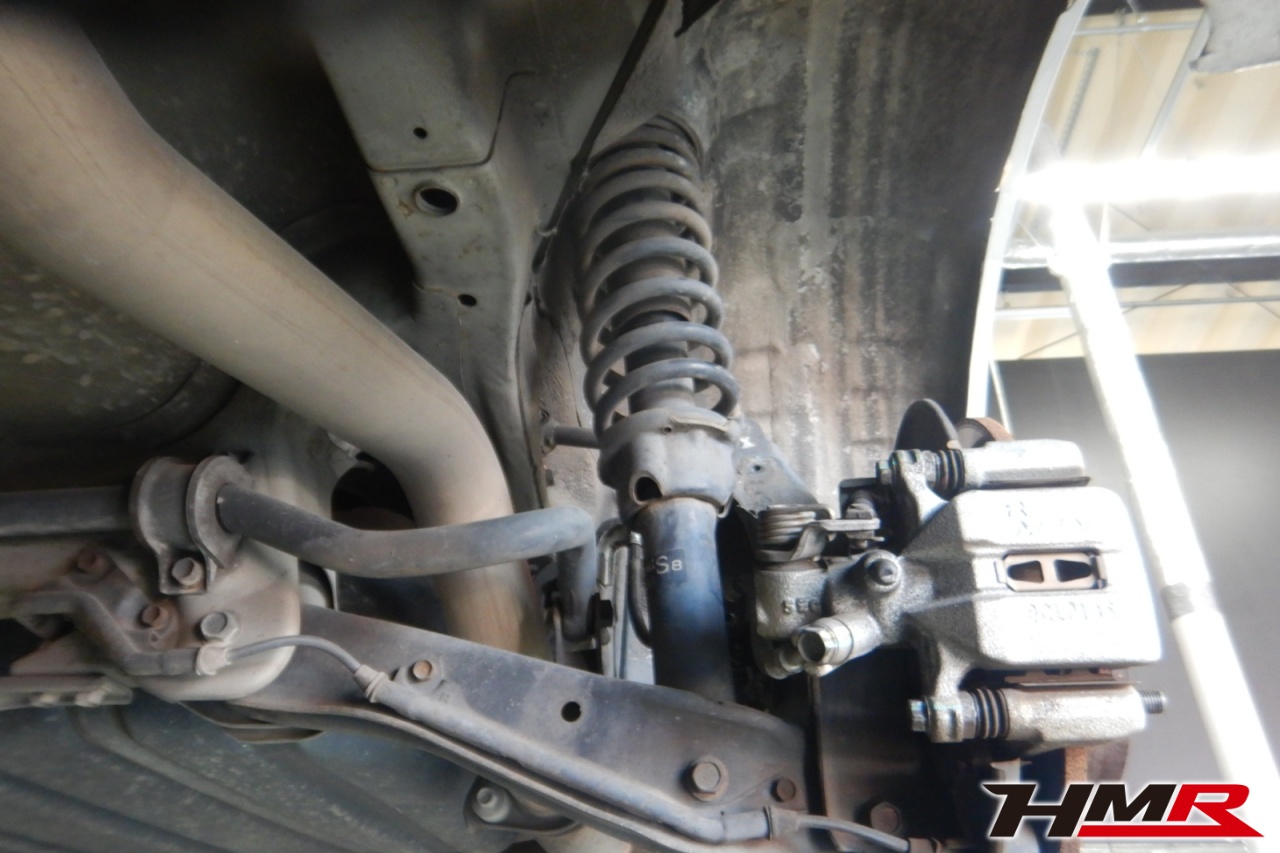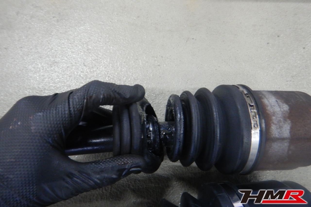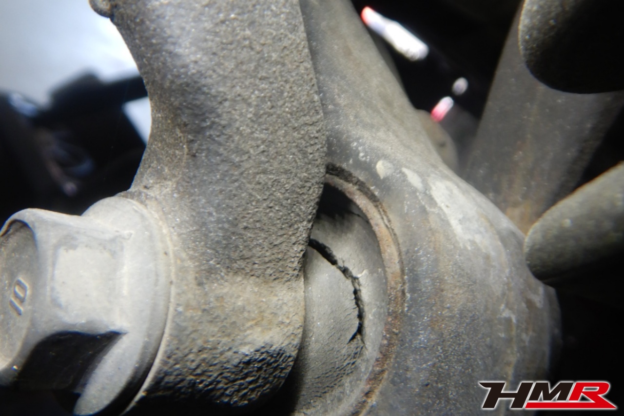 ハブベアリング・ボールジョイント、アーム・リンク類のガタ、ブッシュ・ブーツ類の劣化、エンジン・ミッション・デフからのオイル漏れと各マウント類、タイヤ溝の残量、空気圧の点検しました。左右ドライブシャフトブーツが切れていましたので交換しました。またステアリングギアボックスから滲み、左右フロントロアアームのフォーク取付ブッシュにヒビ、左側トレーリングアームブッシュにヒビが見られました。こちらも今後タイミングを見て交換をおすすめします。