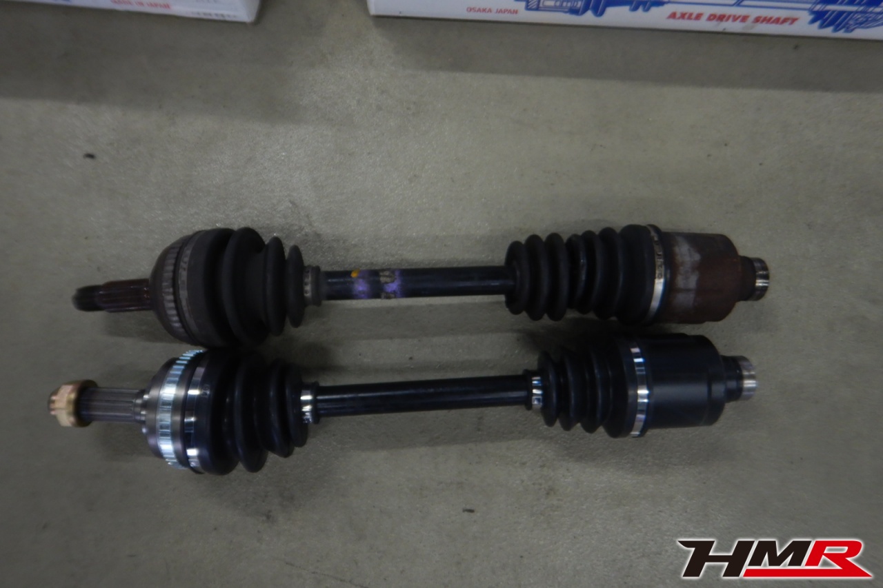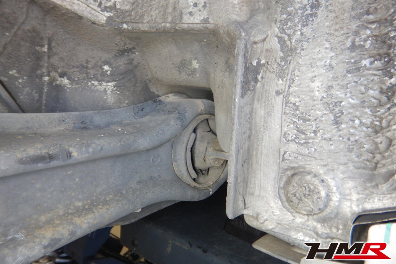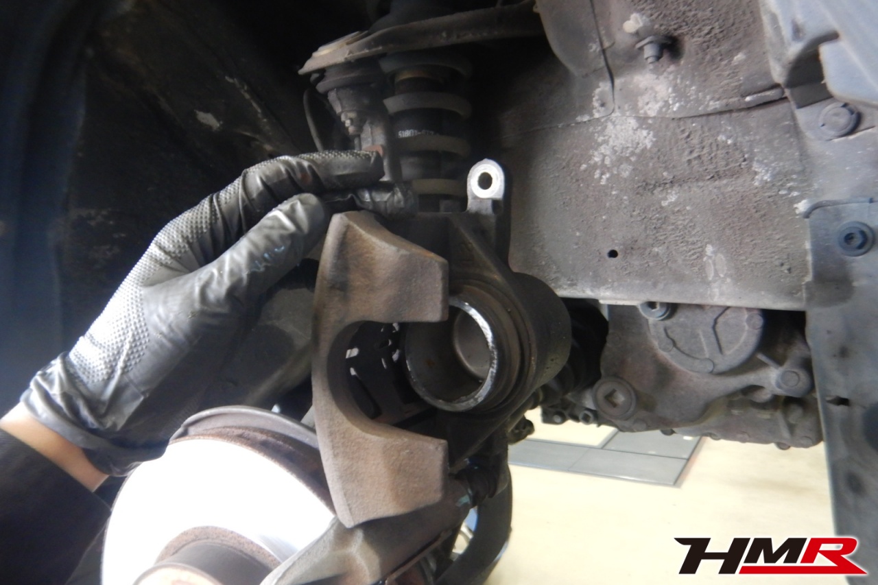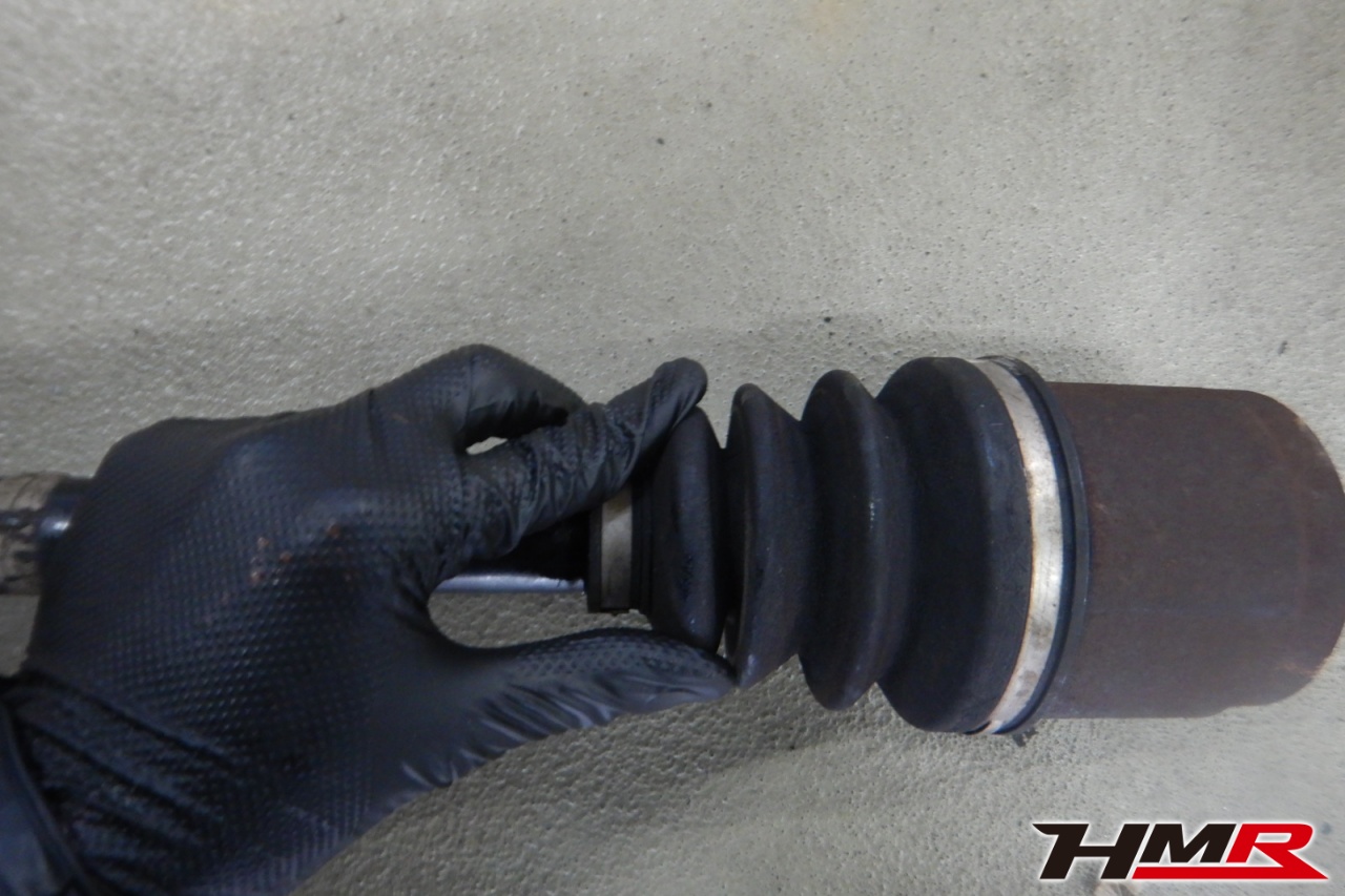 ハブベアリング・ボールジョイント、アーム・リンク類のガタ、ブッシュ・ブーツ類の劣化、エンジン・ミッション・デフからのオイル漏れと各マウント類、タイヤ溝の残量、空気圧の点検しました。左右ドライブシャフトブーツが切れていましたので交換しました。またステアリングギアボックスから滲み、左右フロントロアアームのフォーク取付ブッシュにヒビ、左側トレーリングアームブッシュにヒビが見られました。こちらも今後タイミングを見て交換をおすすめします。
