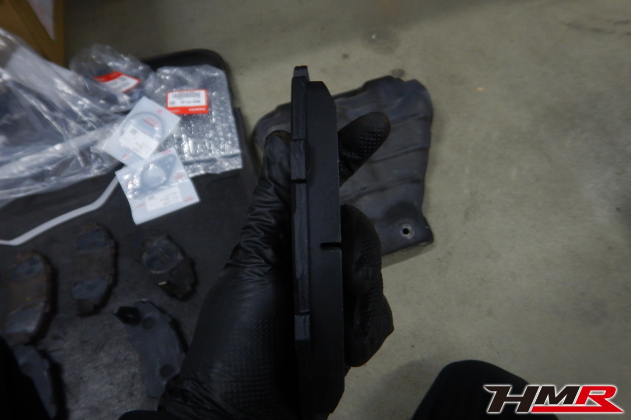 ブレーキパッドの残量はおおよそフロント11.0mm・リア6.5mmでした。写真のブレーキパッドは交換前のものになります。