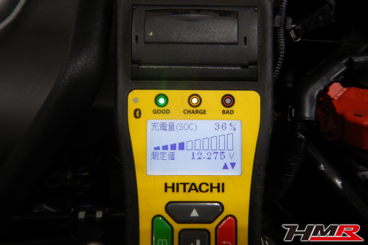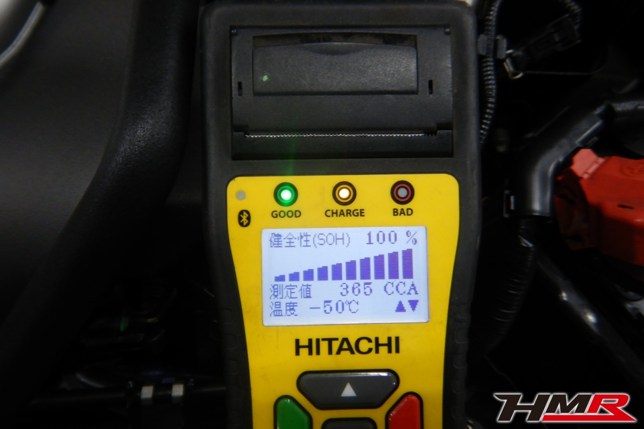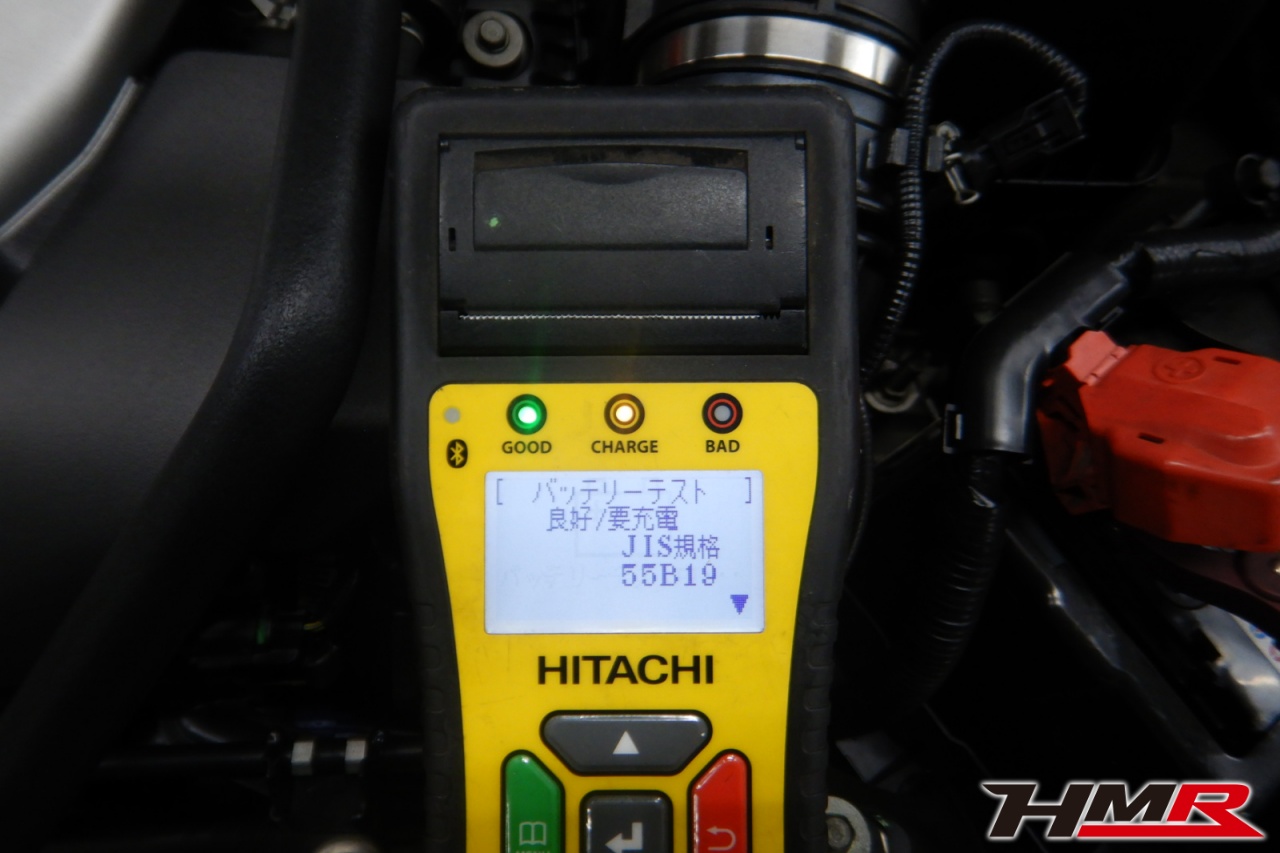 バッテリー、インテークホース、エアクリーナー、補機ベルト、プラグ、ブレーキ・クラッチマスターシリンダー、各部ゴム類の劣化、パッキン類・シール類からのオイル滲み・漏れ、ラジエターの劣化、冷却水漏れ、その他異音などをチェックしました。バッテリーが弱っていましたので充電しました。