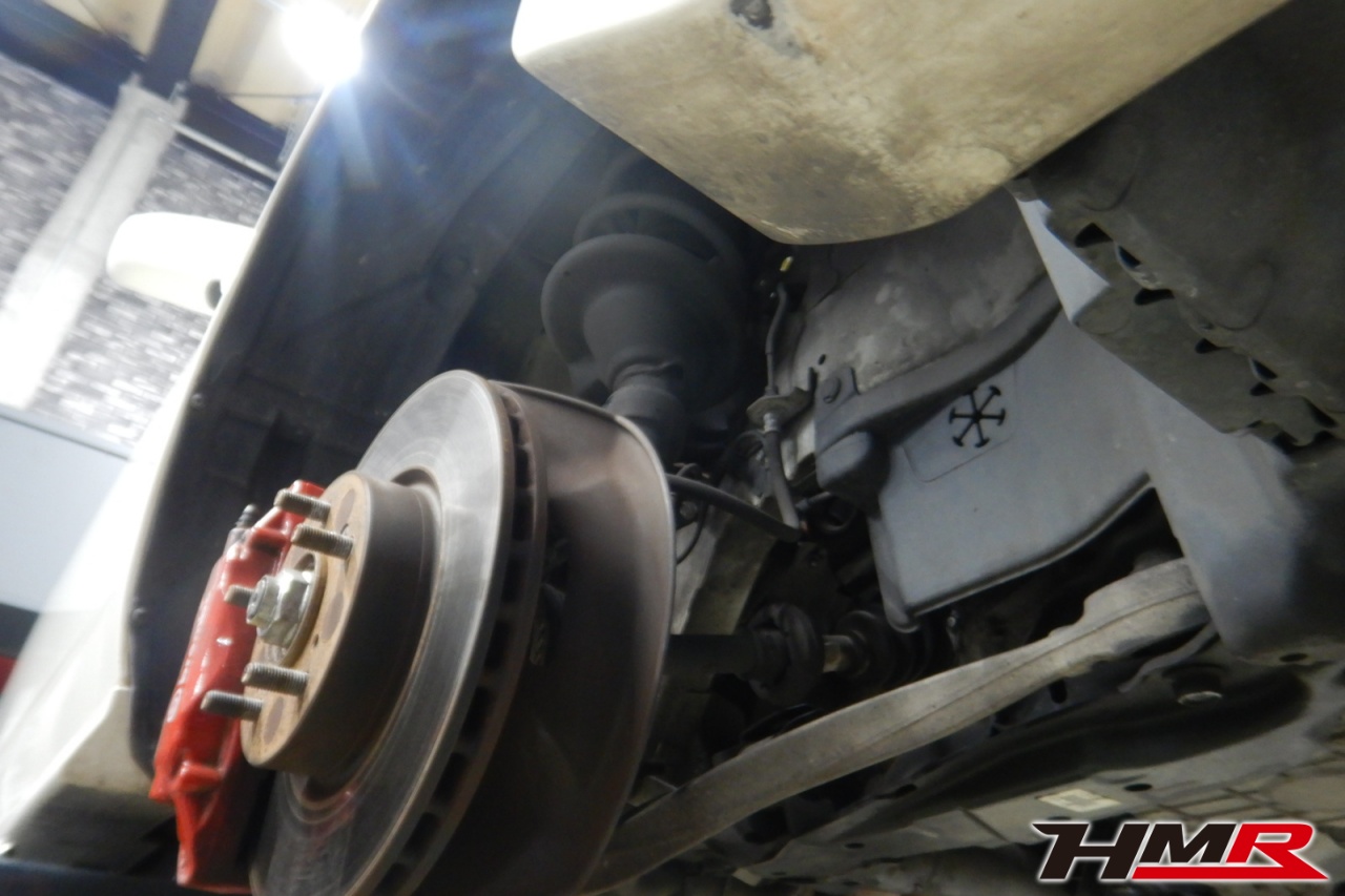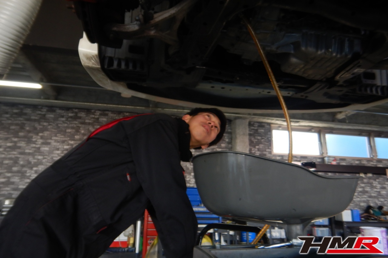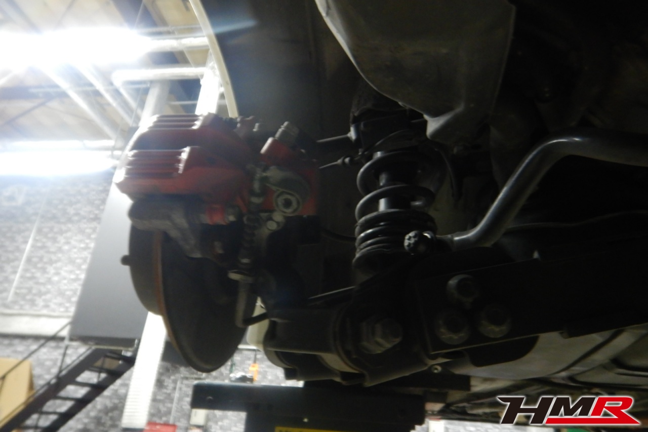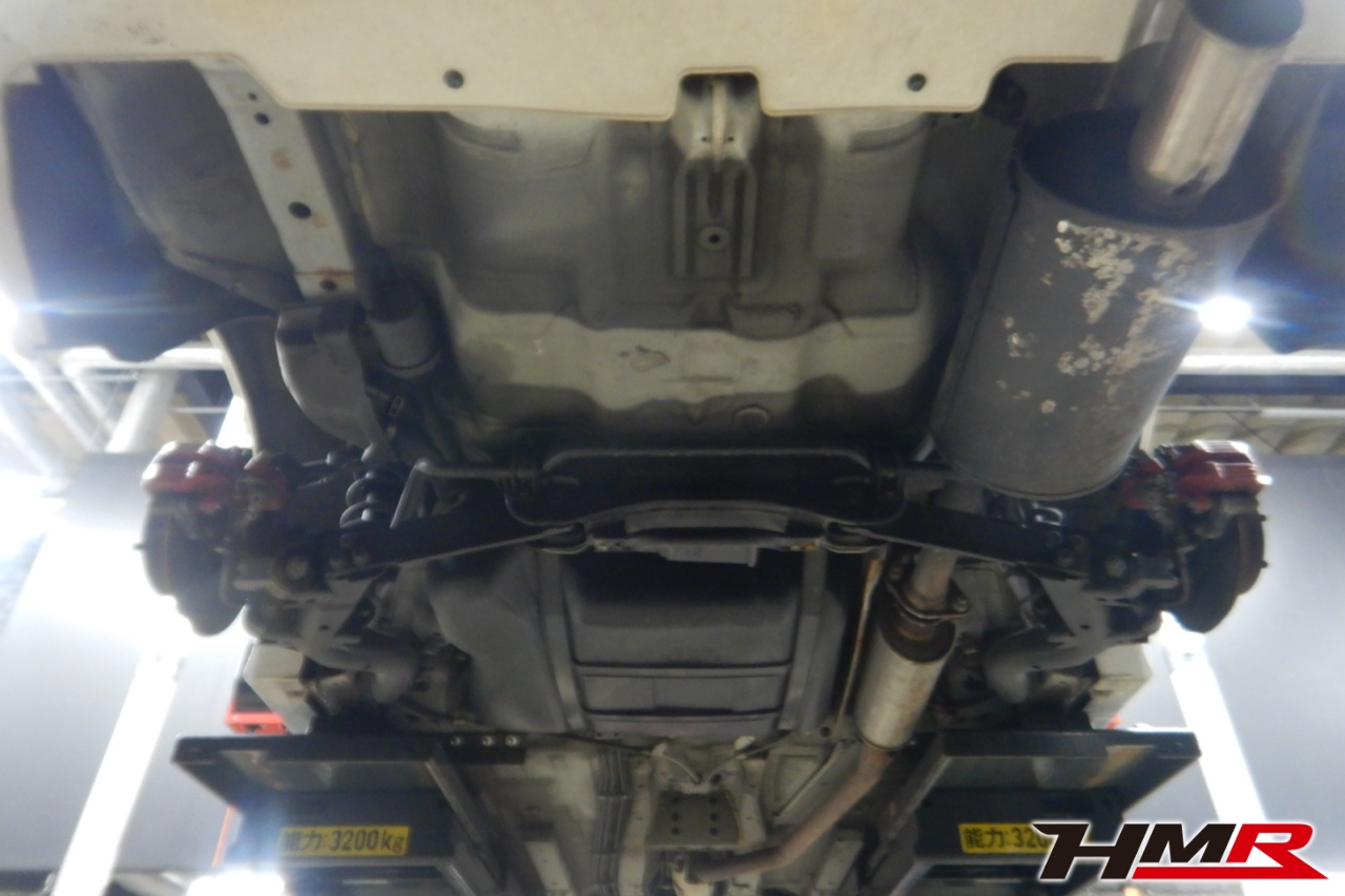 ハブベアリング・ボールジョイント、アーム・リンク類のガタ、ブッシュ・ブーツ類の劣化、エンジン・ミッション・デフからのオイル漏れと各マウント類、タイヤ溝の残量、空気圧の点検しました。右側リアスタビリンクブーツにヒビが見られましたが早急に交換する必要はなかったので、今後乗っていく中でタイミングを見て交換することをおすすめします。