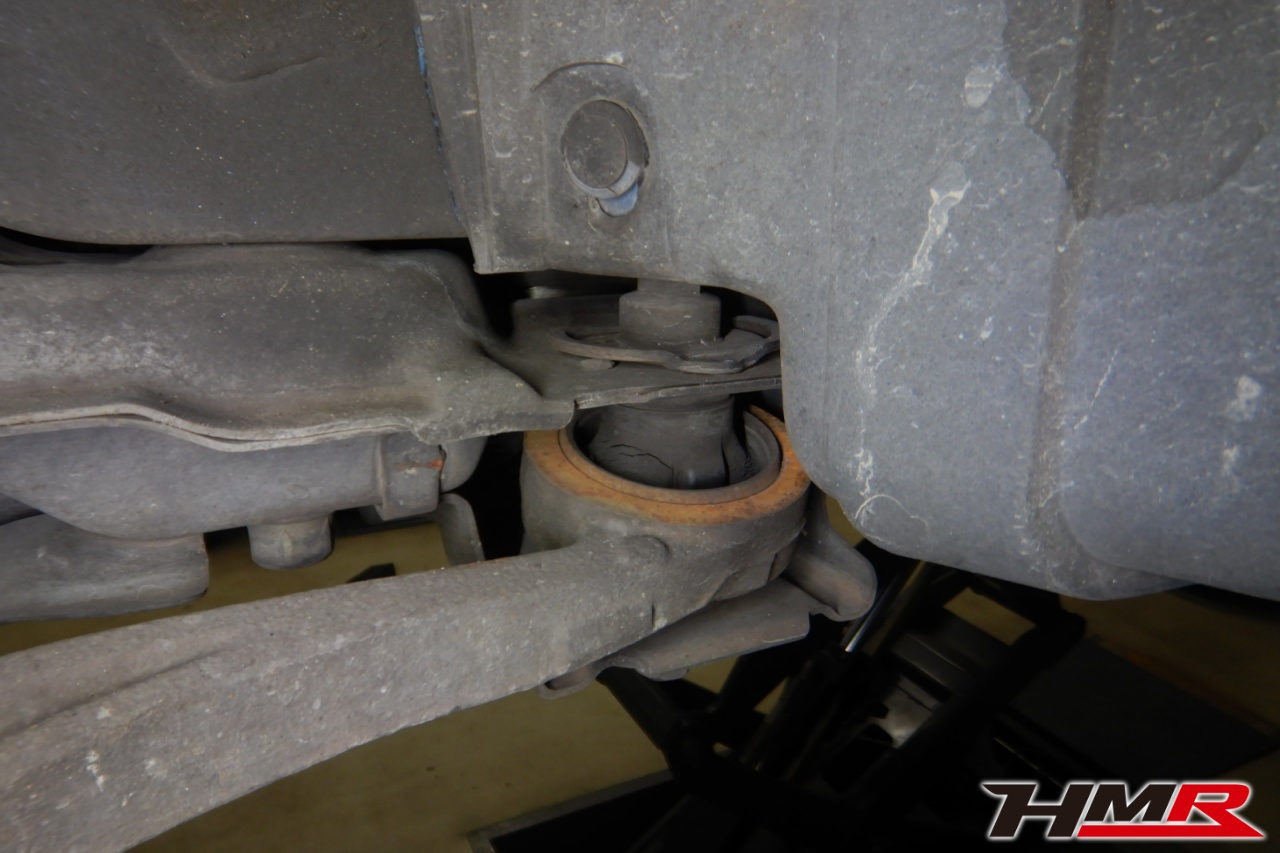 ハブベアリング・ボールジョイント、アーム・リンク類のガタ、ブッシュ・ブーツ類の劣化、エンジン・ミッション・デフからのオイル漏れと各マウント類、タイヤ溝の残量、空気圧の点検しました。右側フロントスタビリンクが切れていましたので交換しました。また左右フロントアッパーアームブーツにヒビ、左右フロントロアアームブッシュにヒビ、左右リアアッパーアームにヒビ、左右リアロアアームブッシュにヒビ、リアナックルロアブーツにヒビがそれぞれ見られましたが早急に交換するほどではなかったため、今後乗っていく中でタイミングを見て交換することをおすすめします。