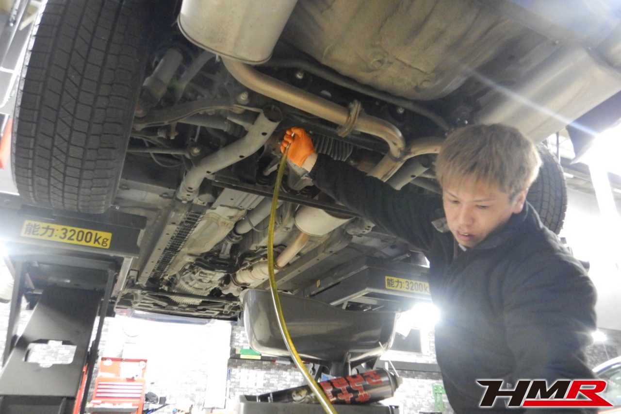 HMR(エイチエムアール)の秋山です。今回はアミューズフロントバンパー 社外マフラー装備のS2000(AP2)の納車前点検整備を行いました。担当メカニックは手代木です。