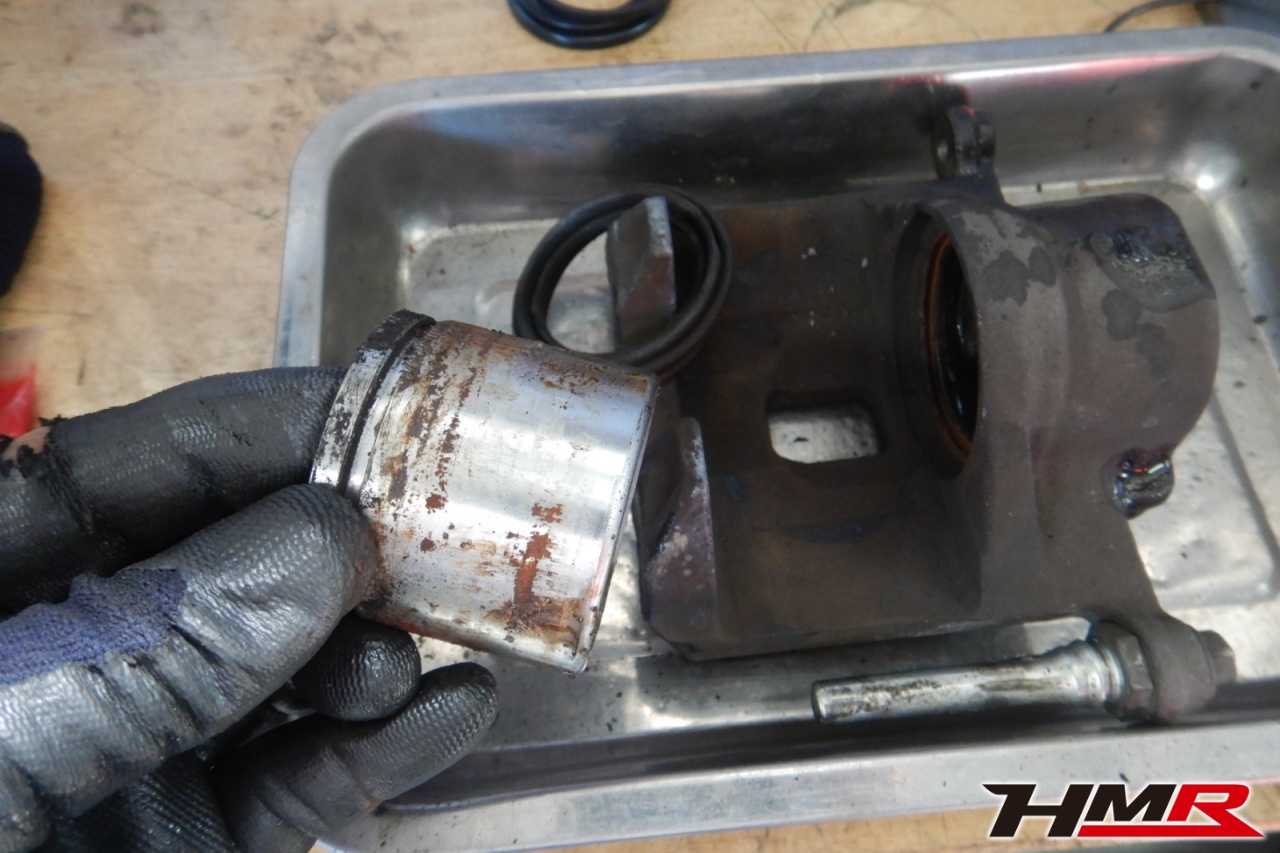 ブレーキキャリパーシール・キャリパーピストン、パッドの残量、ブレーキホースの劣化、ブレーキディスクローターの摩耗をチェックしました。左側フロントブレーキをオーバーホールしました。またブレーキパッドの残量はおおよそフロント7.7mm・リア7.0mmでした。