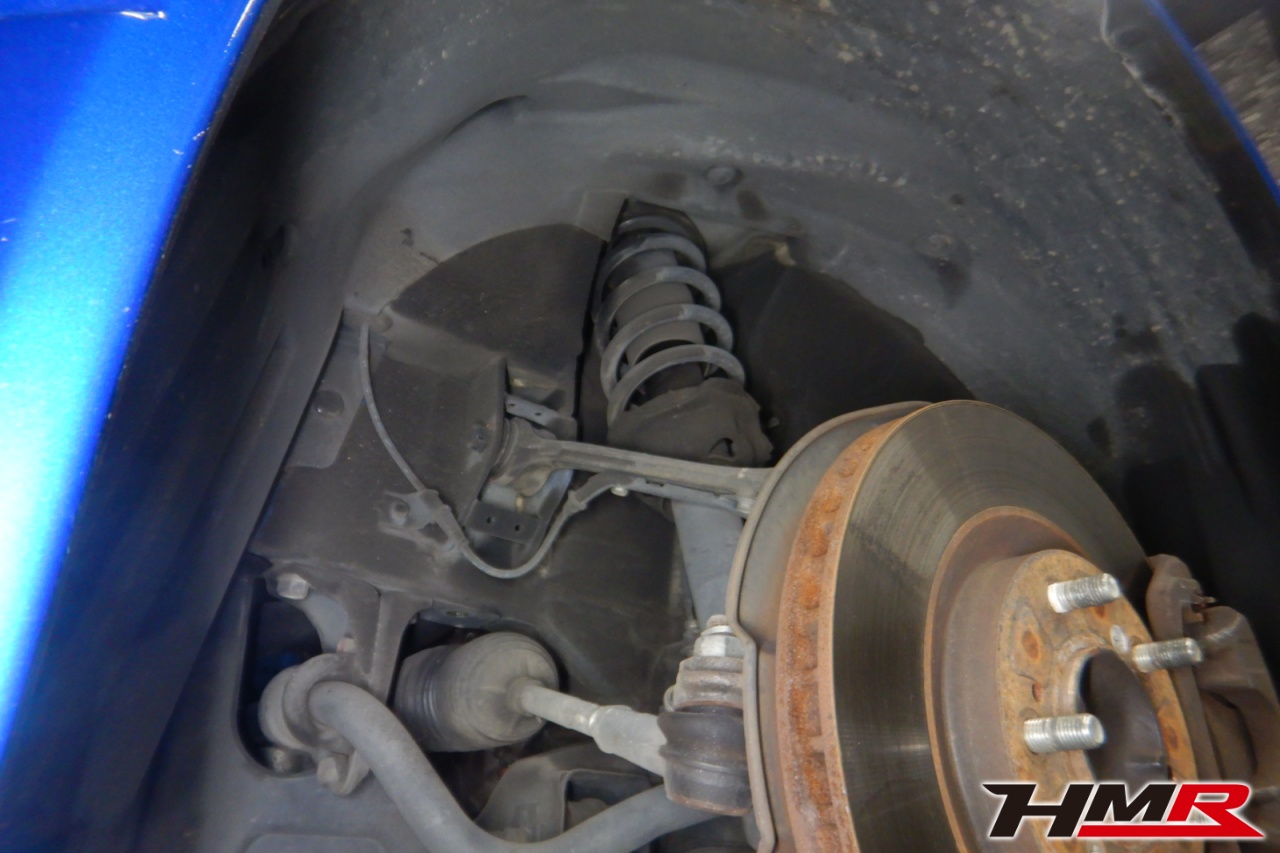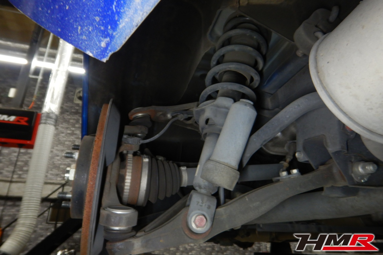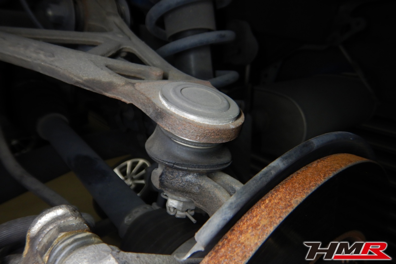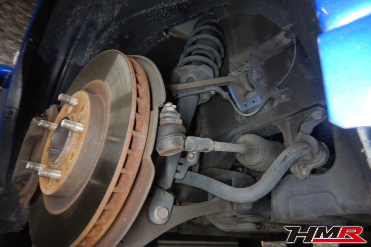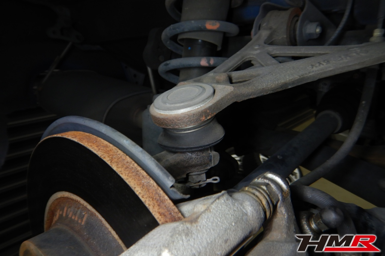 ハブベアリング・ボールジョイント、アーム・リンク類のガタ、ブッシュ・ブーツ類の劣化、エンジン・ミッション・デフからのオイル漏れと各マウント類、タイヤ溝の残量、空気圧の点検しました。右側フロントスタビリンクが切れていましたので交換しました。また左右フロントアッパーアームブーツにヒビ、左右フロントロアアームブッシュにヒビ、左右リアアッパーアームにヒビ、左右リアロアアームブッシュにヒビ、リアナックルロアブーツにヒビがそれぞれ見られましたが早急に交換するほどではなかったため、今後乗っていく中でタイミングを見て交換することをおすすめします。
