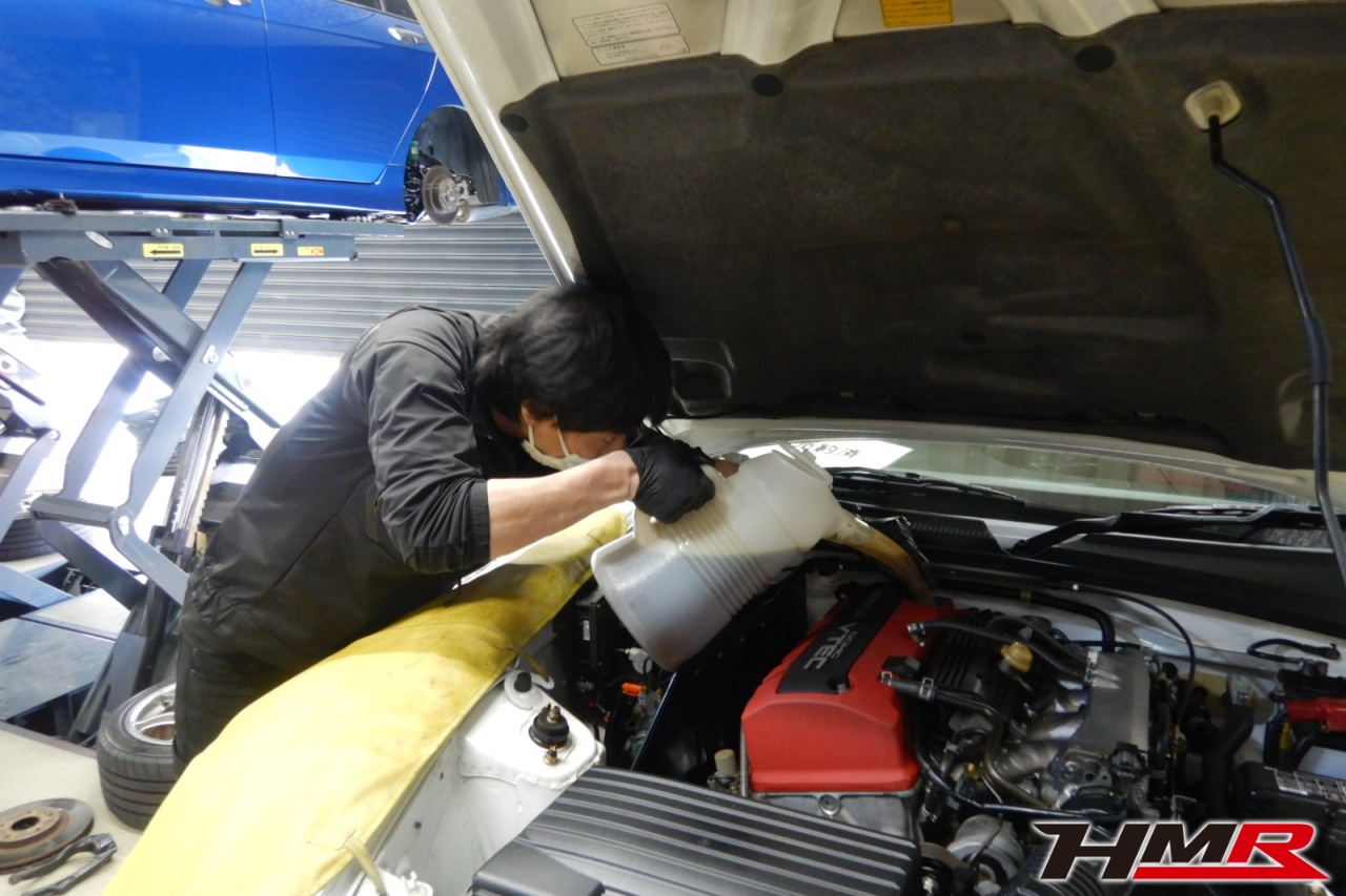 エンジンオイル、オイルフィルター、クーラント液、ミッションオイル、リアデフオイル、ブレーキフルードを交換しました。エンジンオイルはWAKO’SプロステージS 10W-40、ミッションオイルはHonda MTF-3、リアデフオイルはWAKO’S ギアオイルDF-90に交換しています。