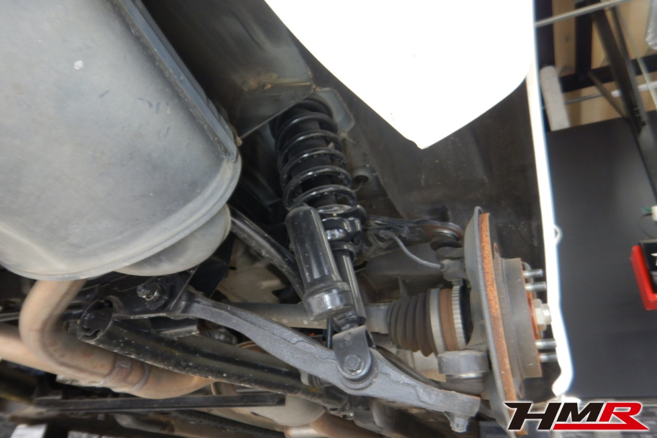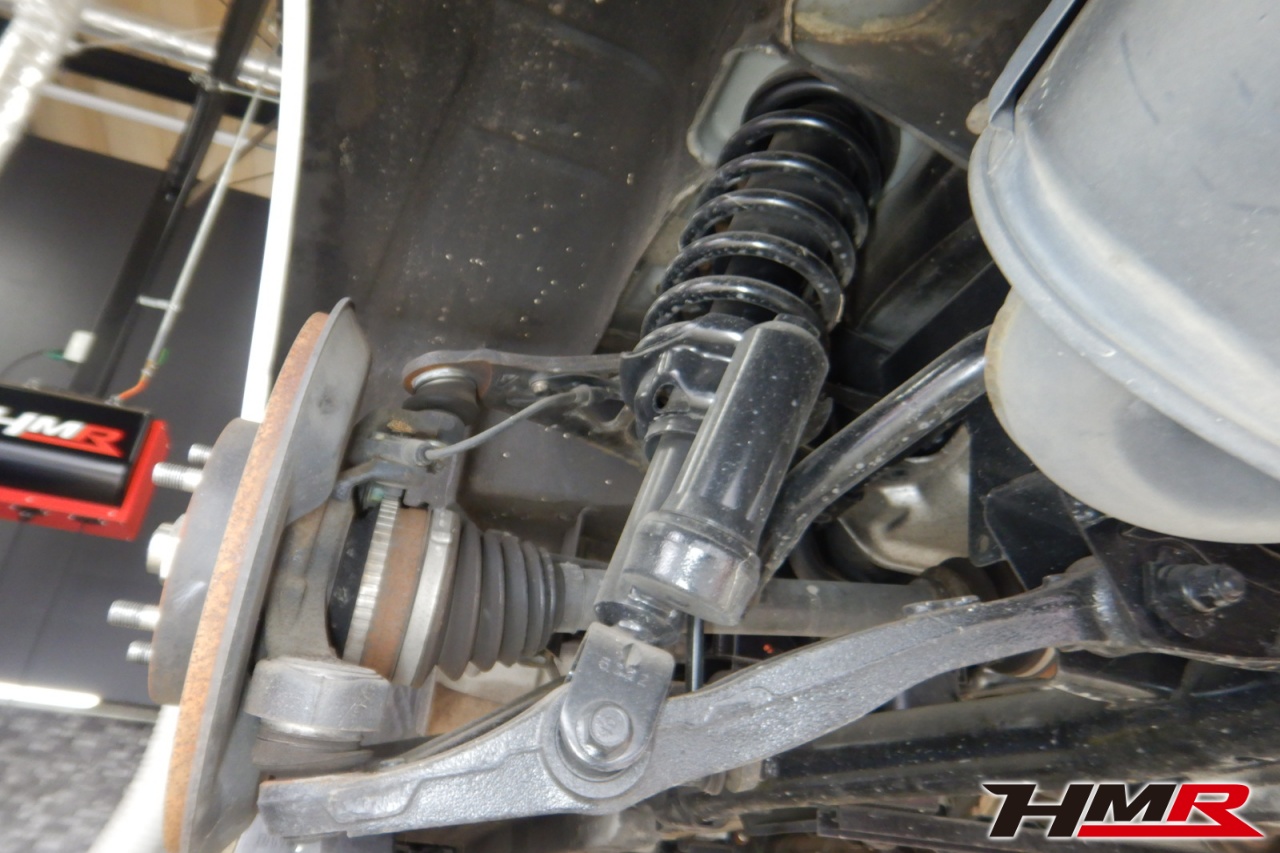 ハブベアリング・ボールジョイント、アーム・リンク類のガタ、ブッシュ・ブーツ類の劣化、エンジン・ミッション・デフからのオイル漏れと各マウント類、タイヤ溝の残量、空気圧の点検しました。フロントロアアームのブッシュにヒビが見られましたがすぐに交換するほどではなかったため今後タイミングを見て交換することをおすすめします。