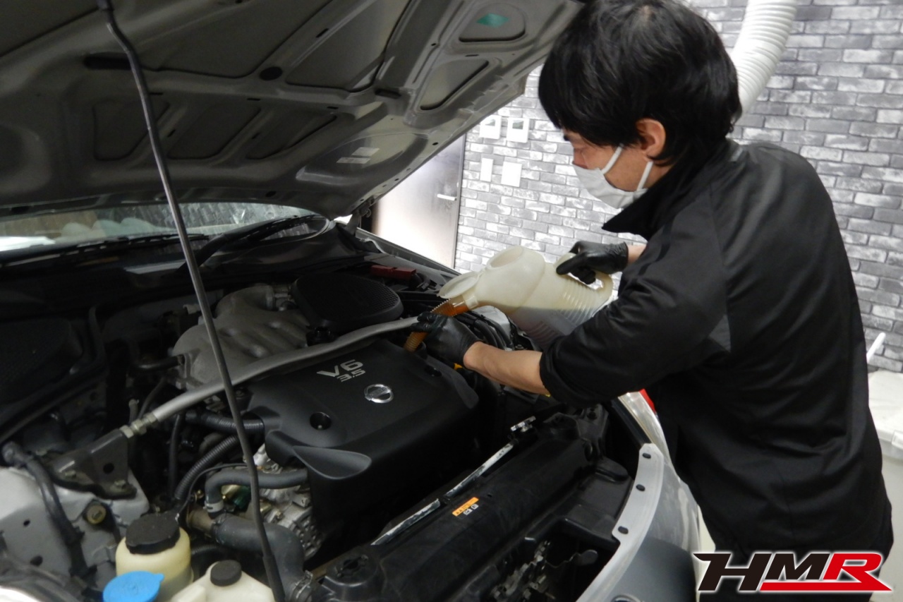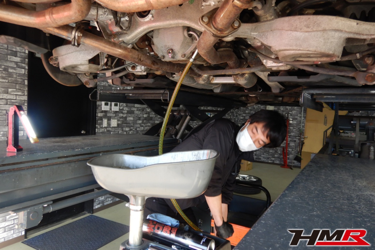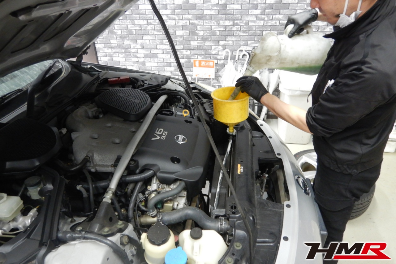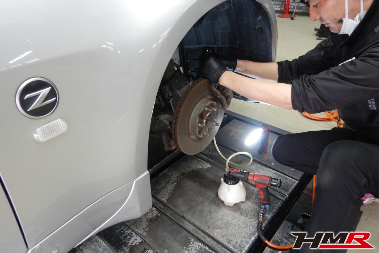 HMR(エイチエムアール)の秋山です。今回は6MT HKSマフラー 社外クラッチ装備のフェアレディZ(Z33)の納車前点検整備を行いました。担当メカニックは手代木です。