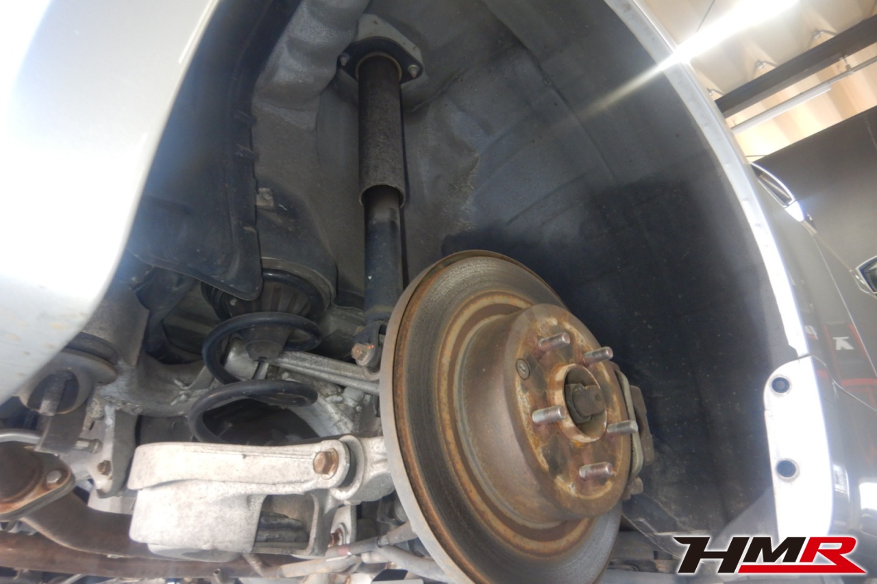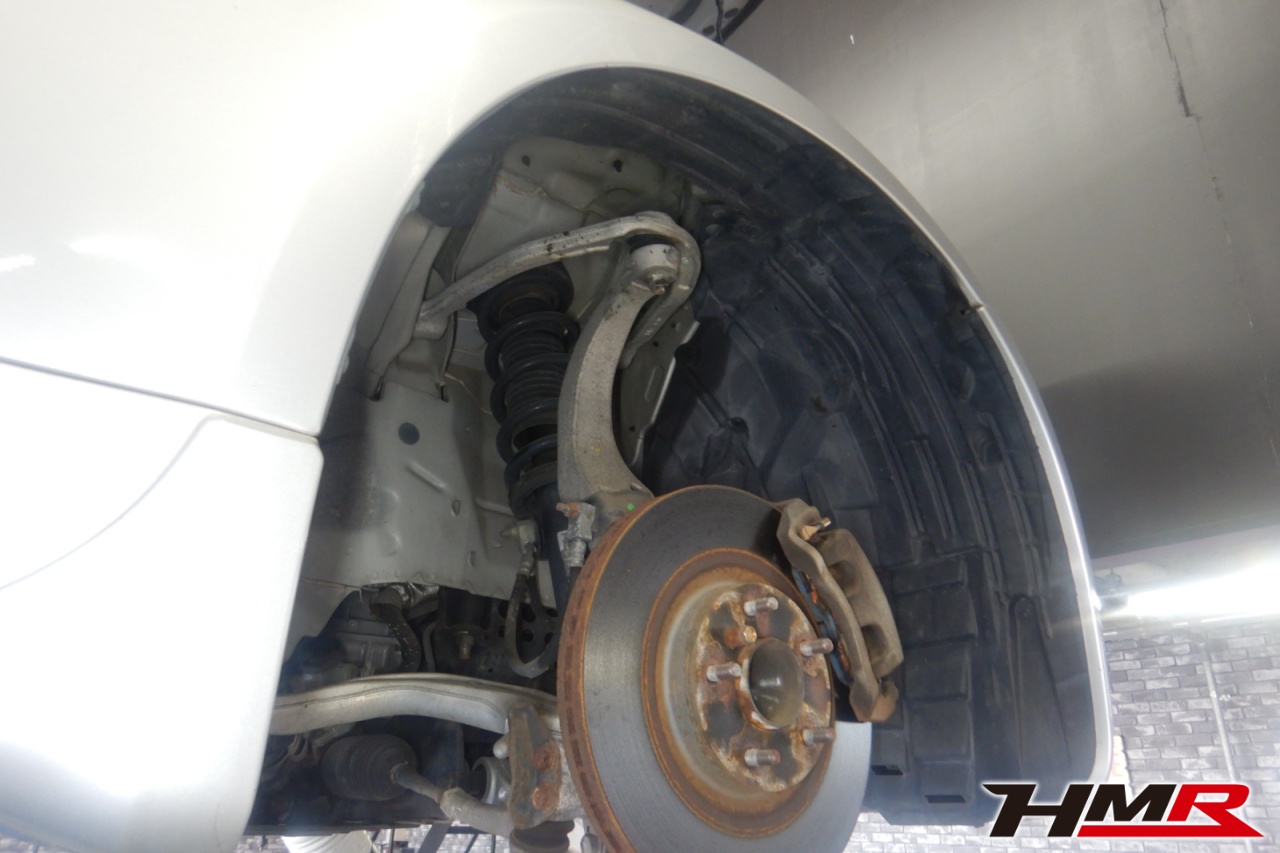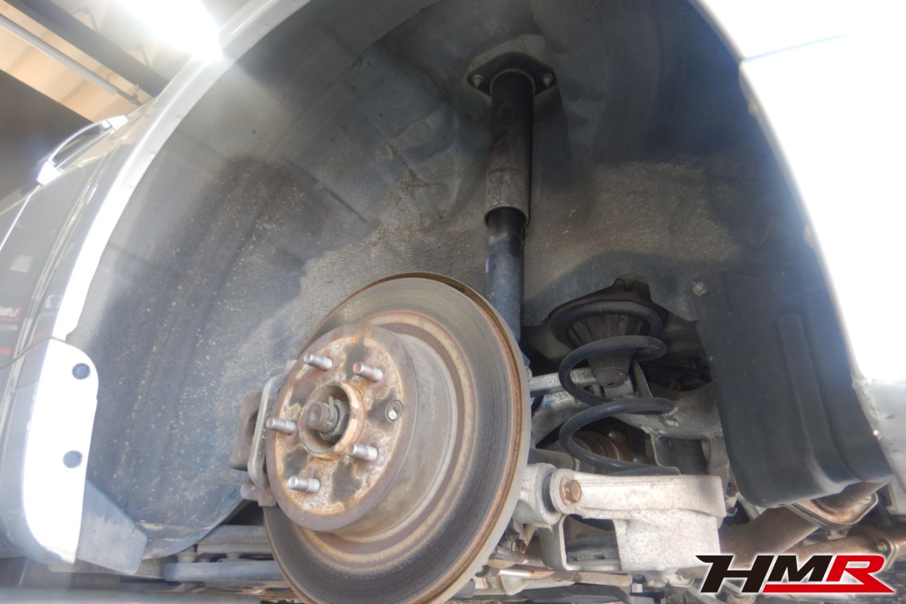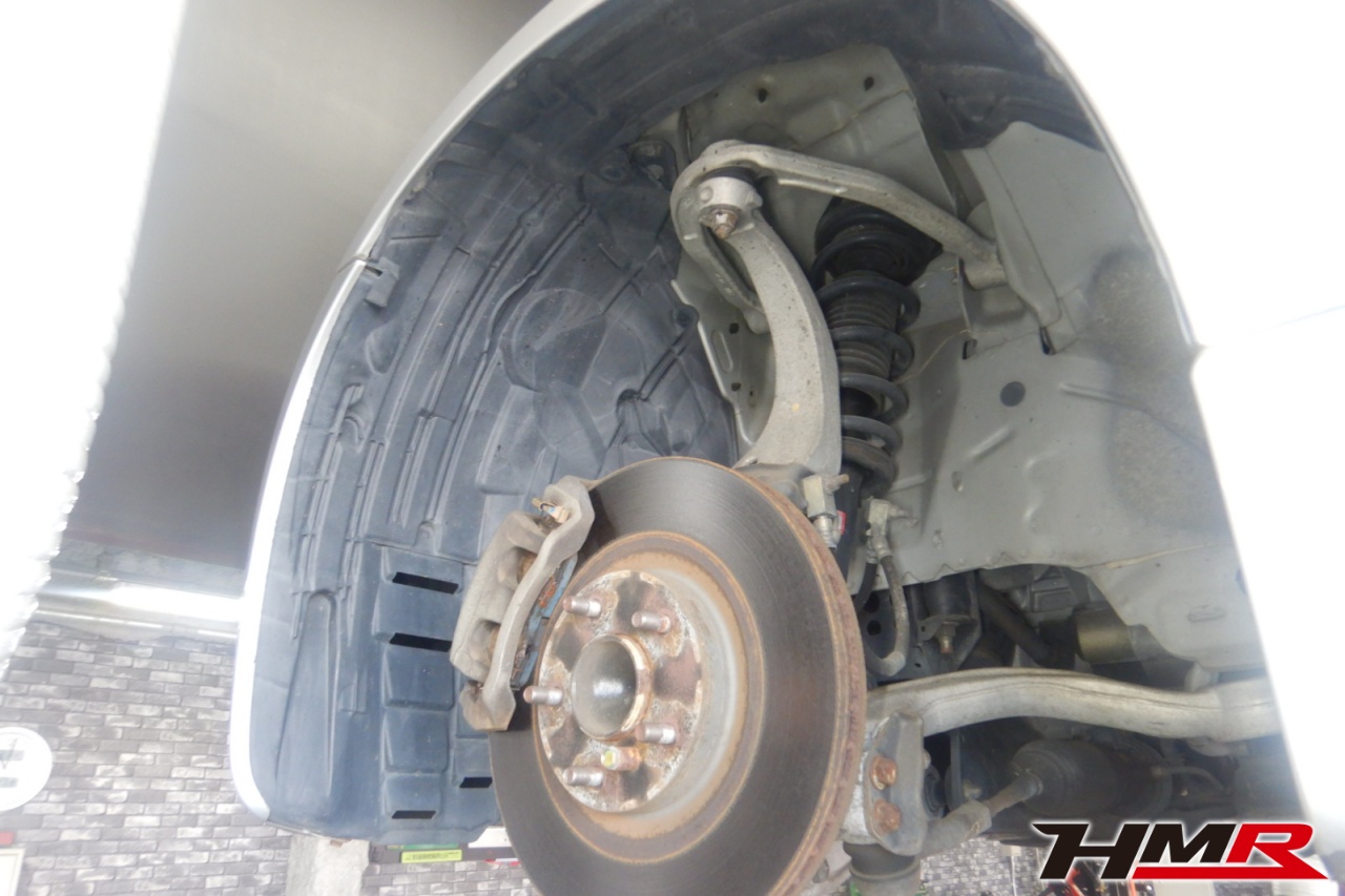 ハブベアリング・ボールジョイント、アーム・リンク類のガタ、ブッシュ・ブーツ類の劣化、エンジン・ミッション・デフからのオイル漏れと各マウント類、タイヤ溝の残量、空気圧の点検しました。