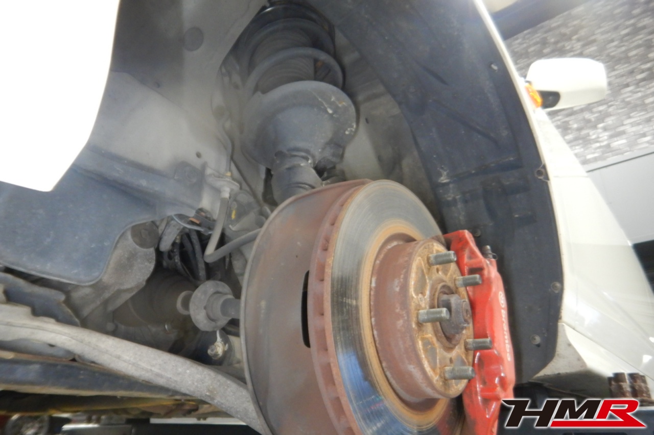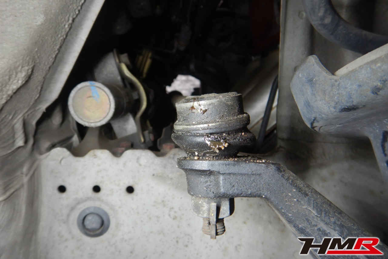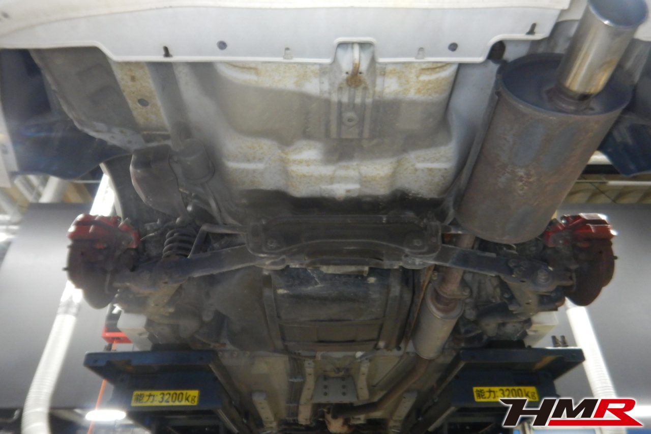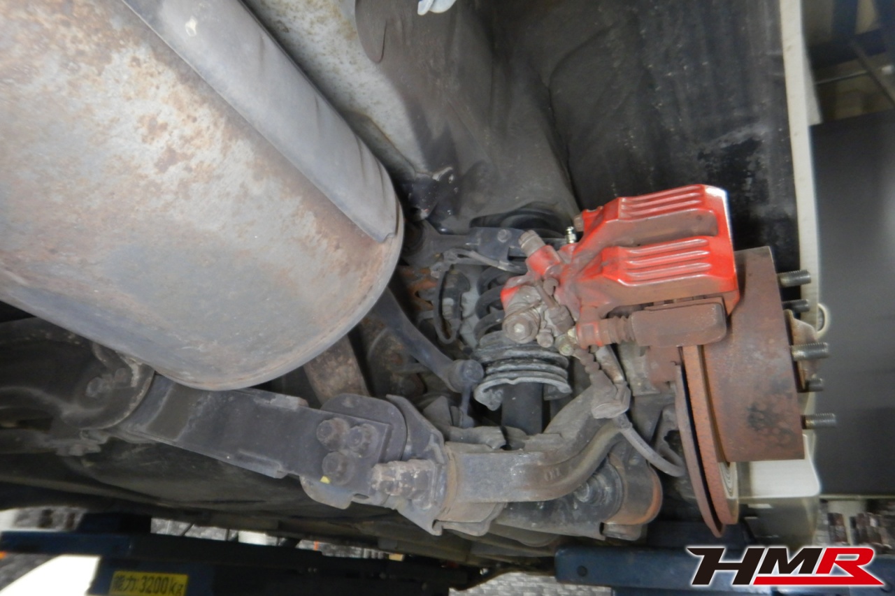 ハブベアリング・ボールジョイント、アーム・リンク類のガタ、ブッシュ・ブーツ類の劣化、エンジン・ミッション・デフからのオイル漏れと各マウント類、タイヤ溝の残量、空気圧の点検しました。左右タイロッドエンドブーツ、全スタビリンクブーツが切れていましたので交換しました。またフロントロアアームブッシュ、エンジンマウントにヒビが見られましたが、こちらは早急な交換は必要なかったため今後交換することをおすすめします。