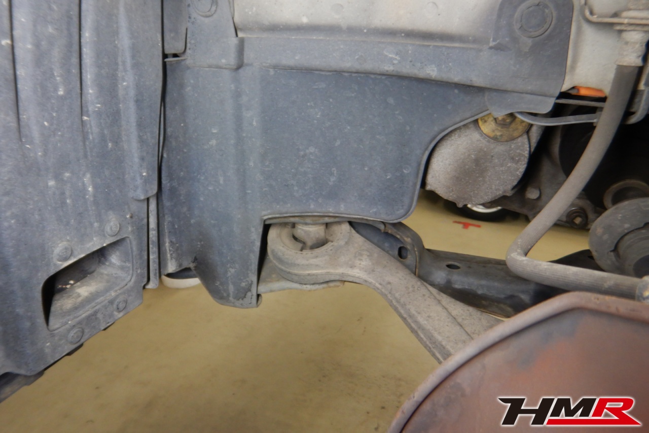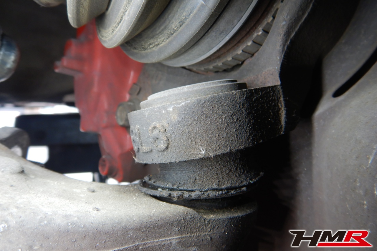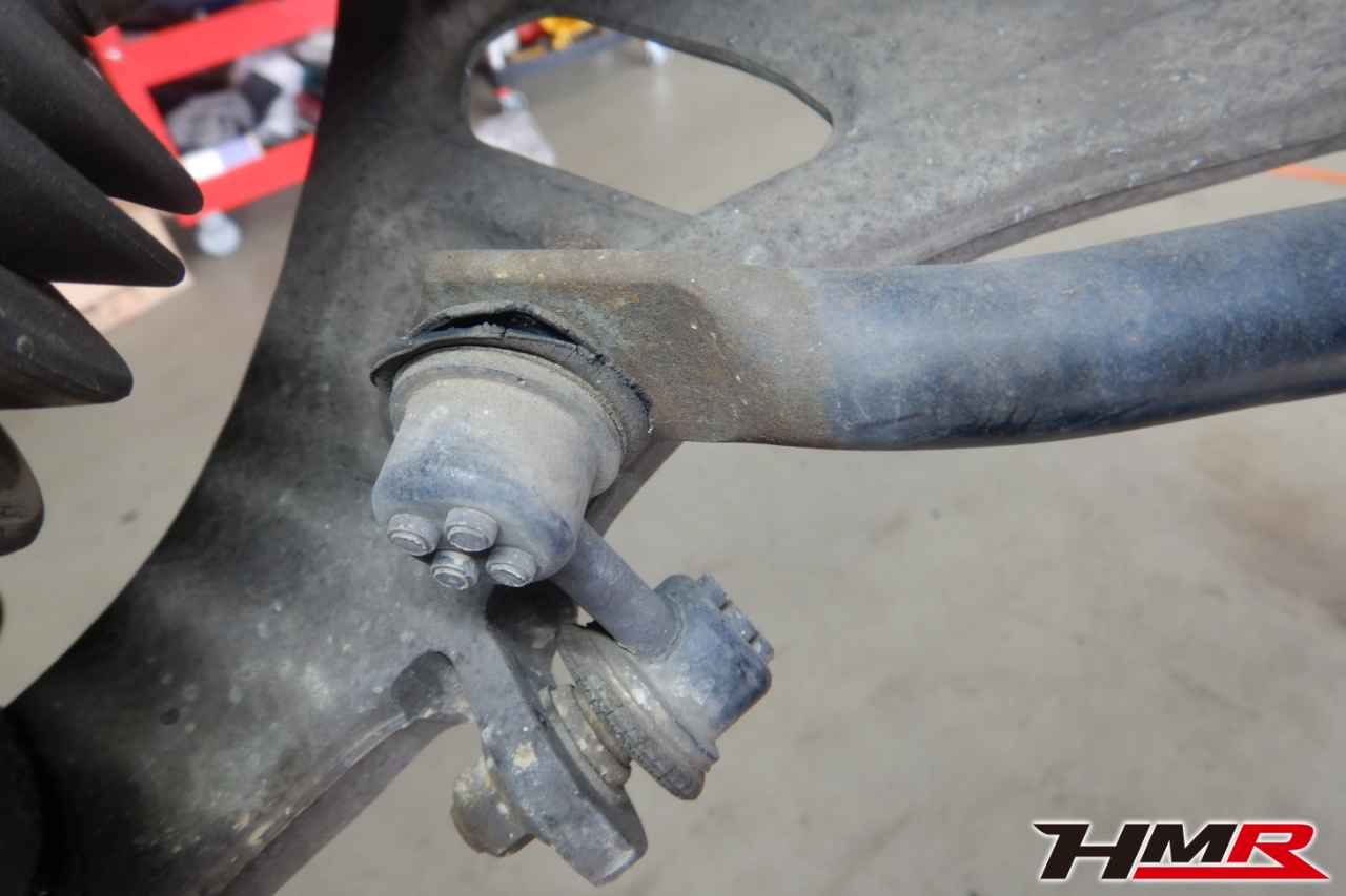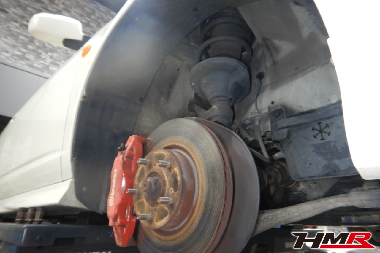ハブベアリング・ボールジョイント、アーム・リンク類のガタ、ブッシュ・ブーツ類の劣化、エンジン・ミッション・デフからのオイル漏れと各マウント類、タイヤ溝の残量、空気圧の点検しました。左右タイロッドエンドブーツ、全スタビリンクブーツが切れていましたので交換しました。またフロントロアアームブッシュ、エンジンマウントにヒビが見られましたが、こちらは早急な交換は必要なかったため今後交換することをおすすめします。