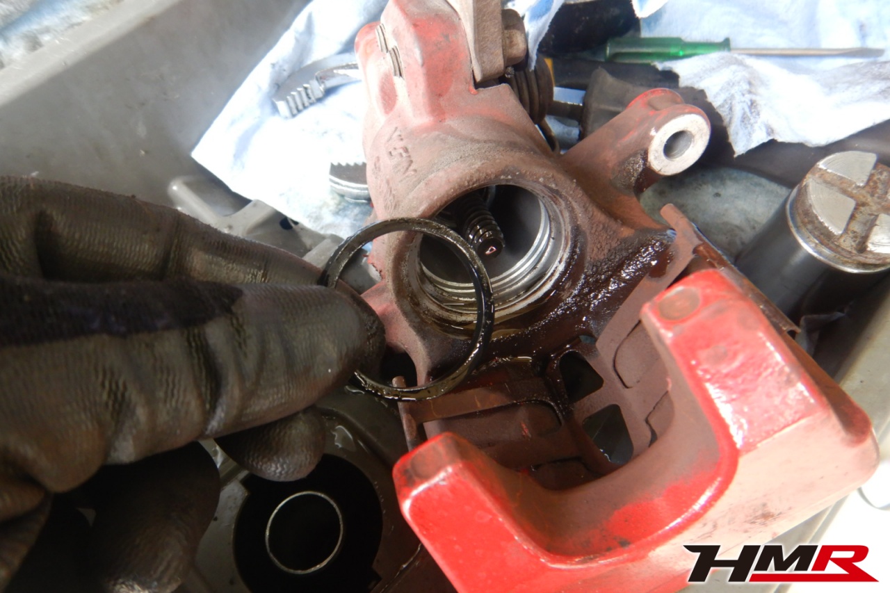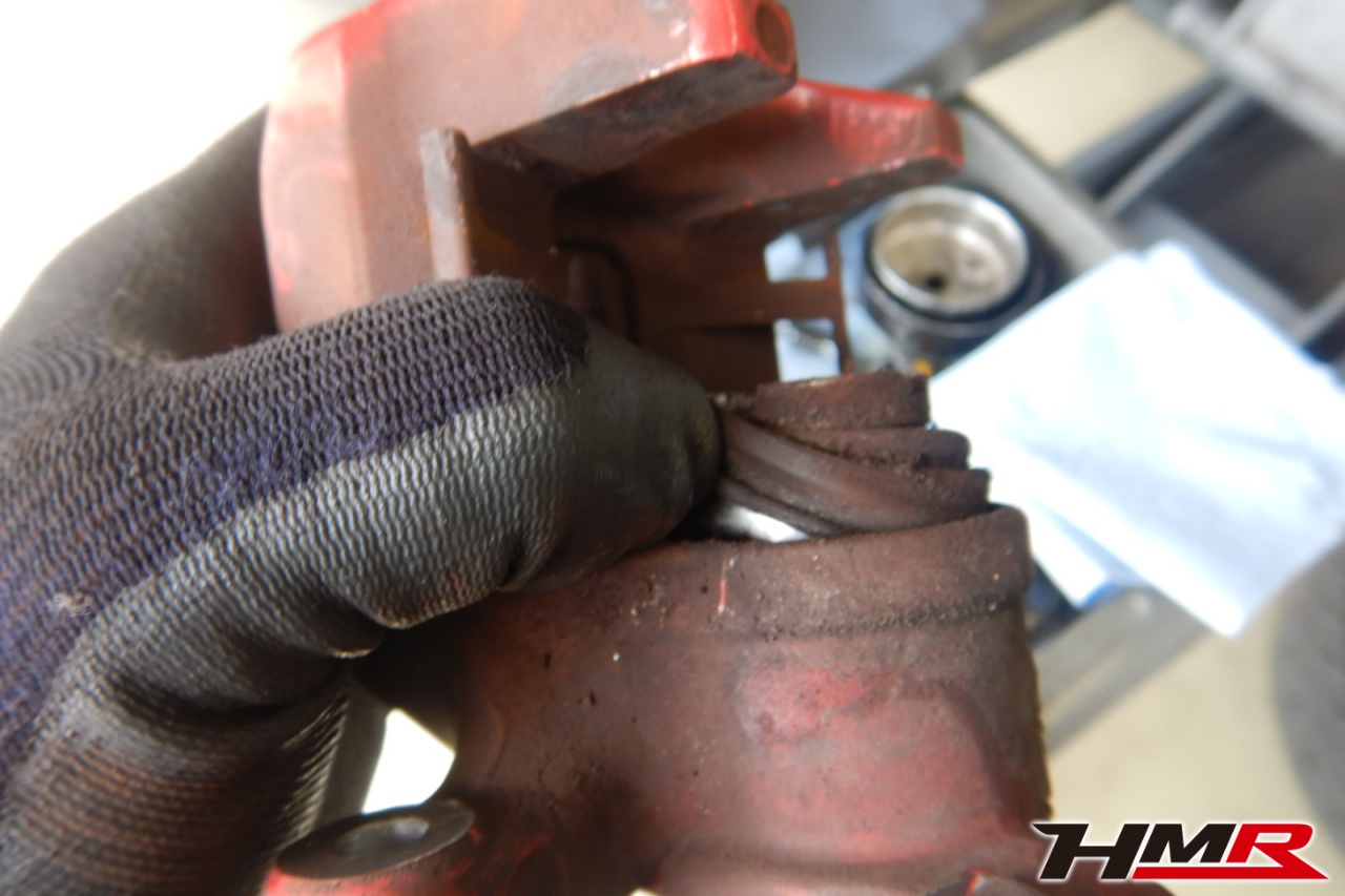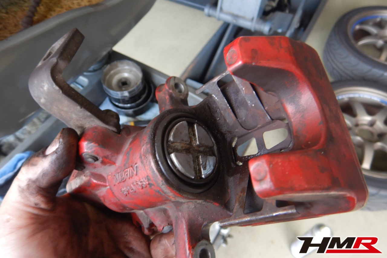 ブレーキキャリパーシール・キャリパーピストン、パッドの残量、ブレーキホースの劣化、ブレーキディスローターの摩耗をチェックしました。右側リアブレーキのオーバーホールを行いました。パッド残量はおおよそフロント7.7mm・リア3.7mmでした。