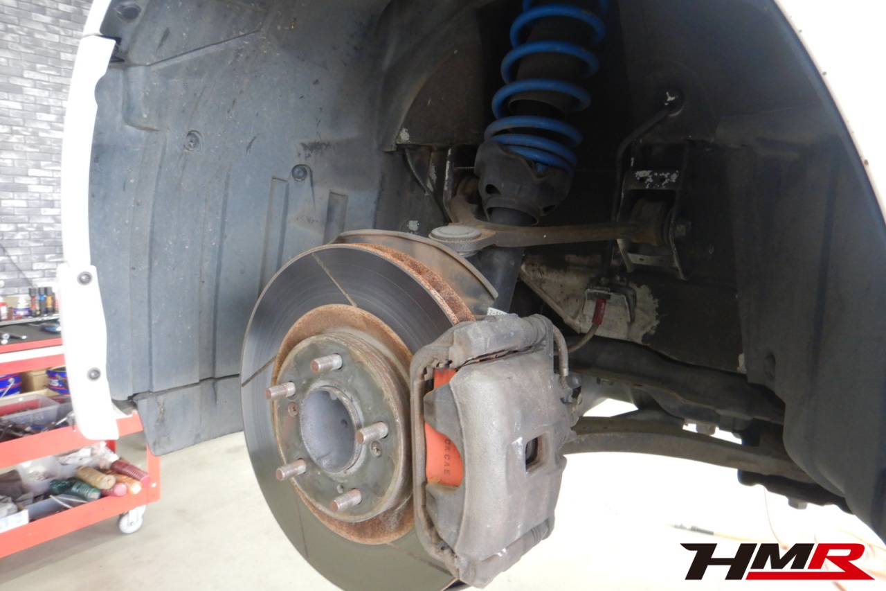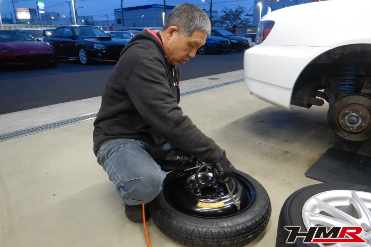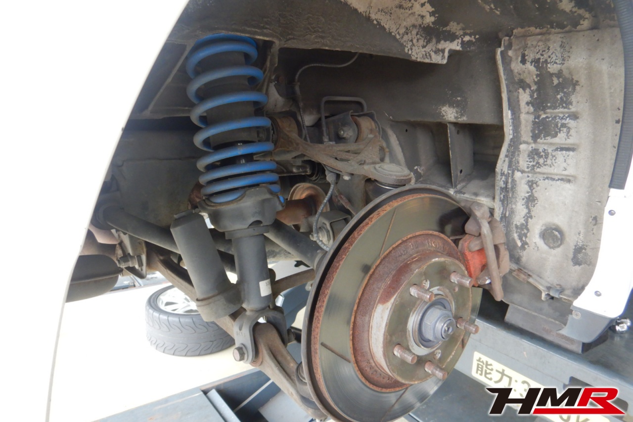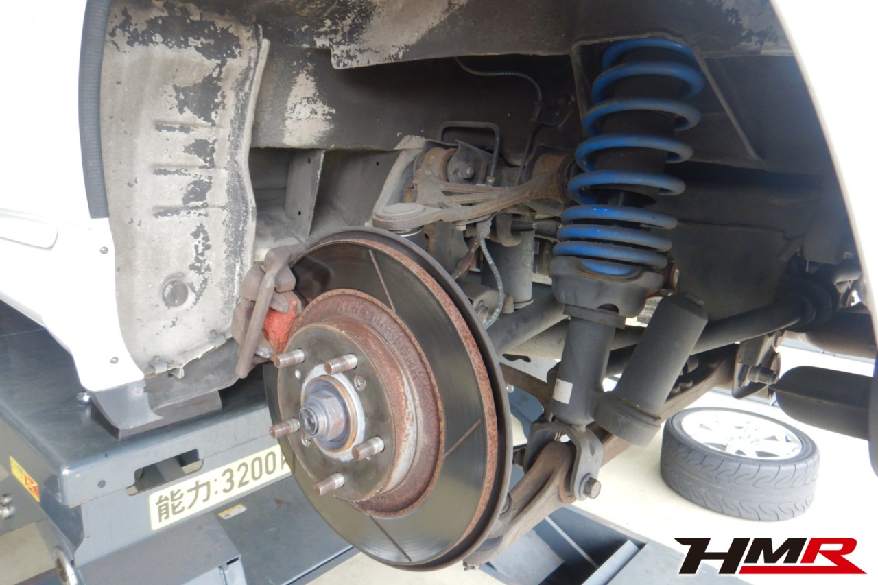 ハブベアリング・ボールジョイント、アーム・リンク類のガタ、ブッシュ・ブーツ類の劣化、エンジン・ミッション・デフからのオイル漏れと各マウント類、タイヤ溝の残量、空気圧の点検しました。特に問題ありませんでした。