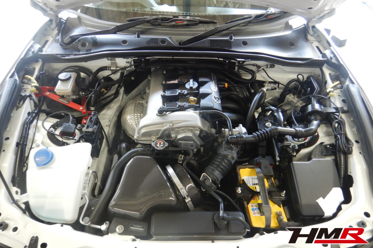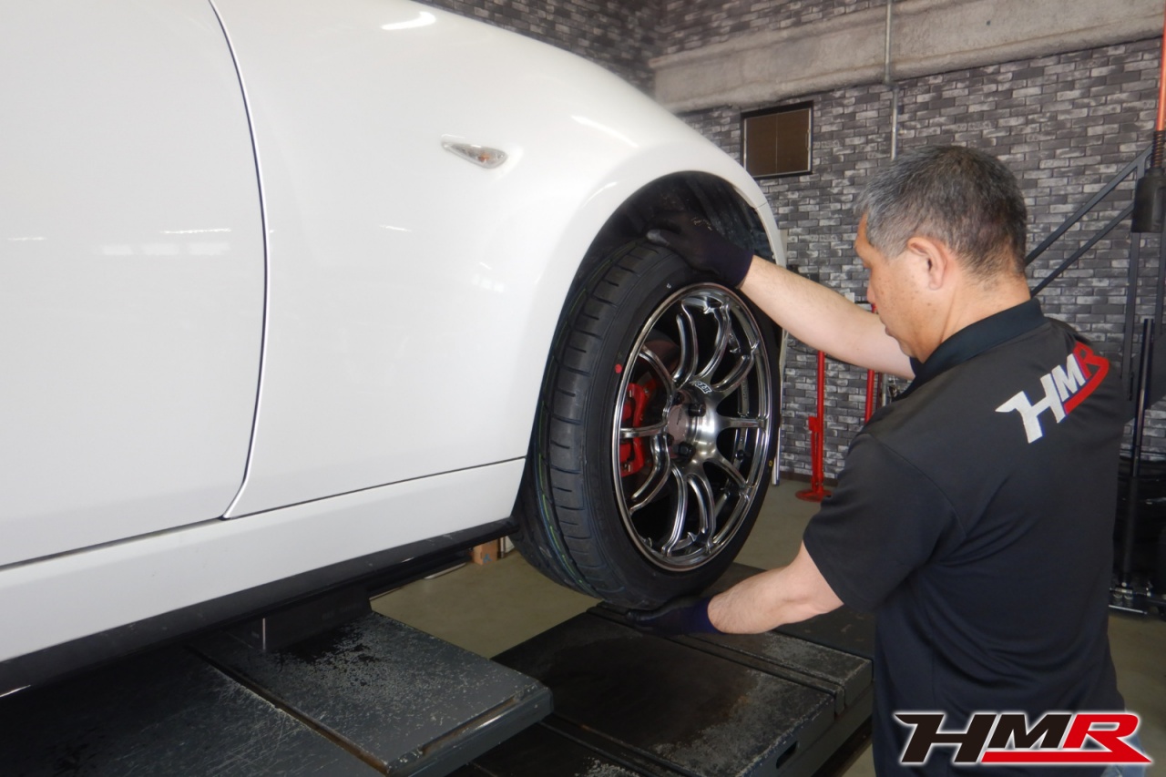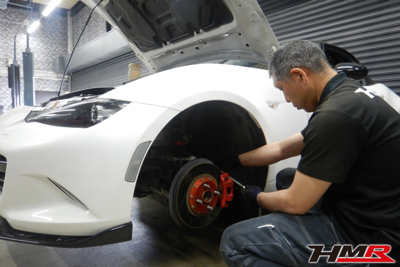 HMR(エイチエムアール)の秋山です。今回は純正レカロ 17AW ブリッツ車高調装備のロードスター(ND5RC)の納車前点検整備を行いました。担当メカニックは手代木です。