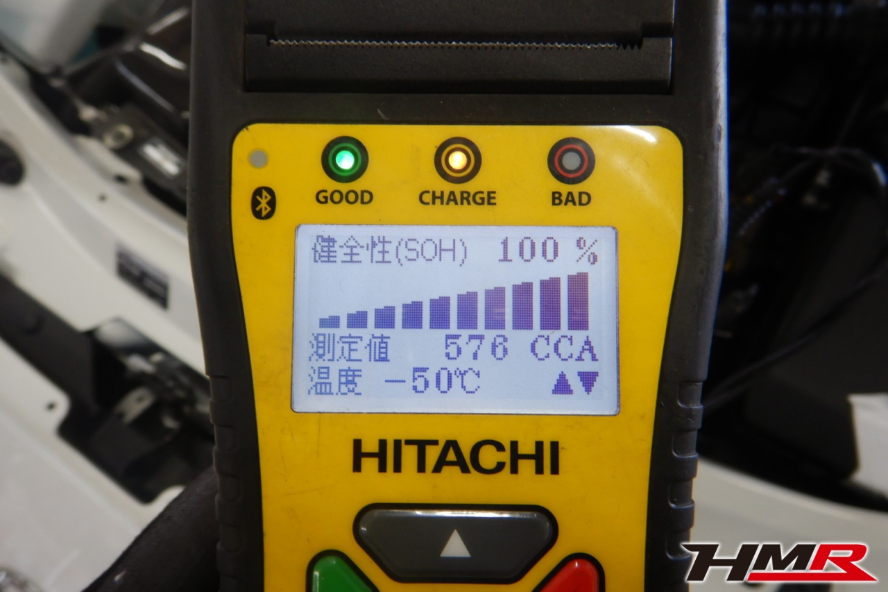 バッテリー、インテークホース、エアクリーナー、補機ベルト、プラグ、ブレーキ・クラッチマスターシリンダー、各部ゴム類の劣化、パッキン類・シール類からのオイル滲み・漏れ、ラジエターの劣化、冷却水漏れ、その他異音等をチェックしました。特に問題ありませんでした。
