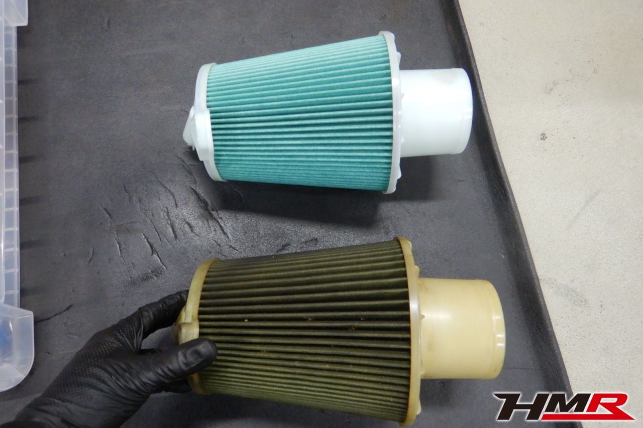 バッテリー、インテークホース、エアクリーナー、補機ベルト、プラグ、ブレーキ・クラッチマスターシリンダー、各部ゴム類の劣化、パッキン類・シール類からのオイル滲み・漏れ、ラジエターの劣化、冷却水漏れ、その他異音などをチェックしました。エアクリーナーに汚れが見られましたので交換しました。