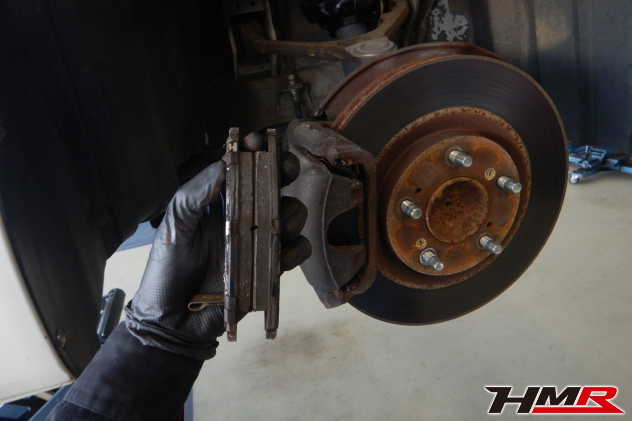 ブレーキキャリパーシール・キャリパーピストン、パッドの残量、ブレーキホースの劣化、ブレーキディスクローターの摩耗をチェックしました。ローターに摩耗が見られましたので今後交換することをおすすめします。またリアパッドも減ってきていますので乗っていく中で交換をおすすめします。ブレーキパッドの残量はおおよそフロント7.0mm・リア4.0mmでした。