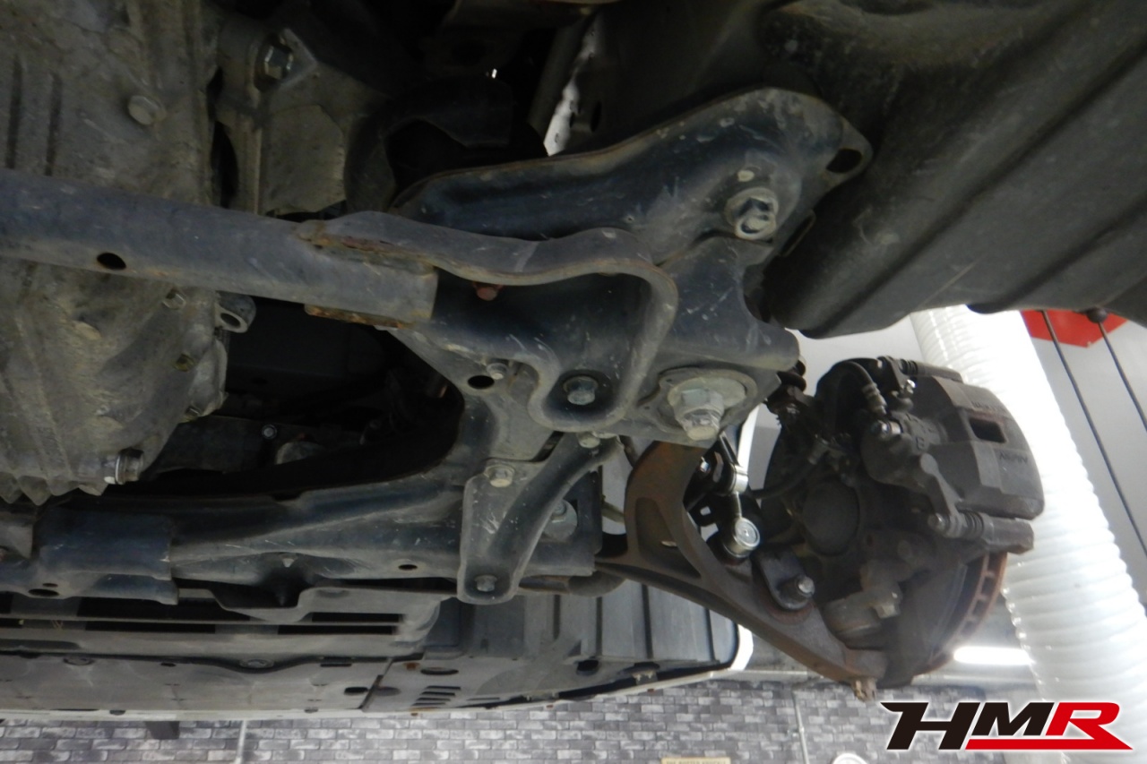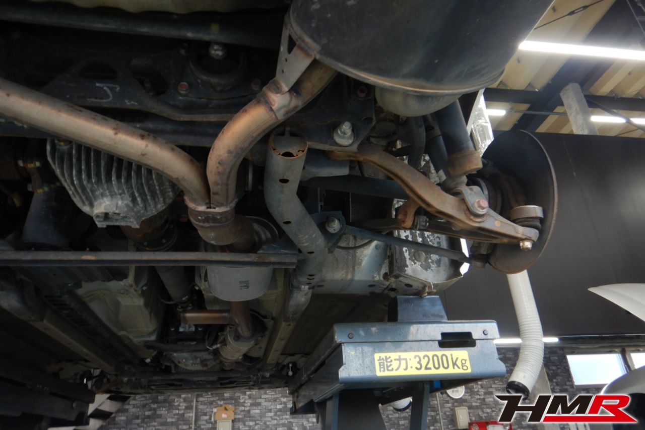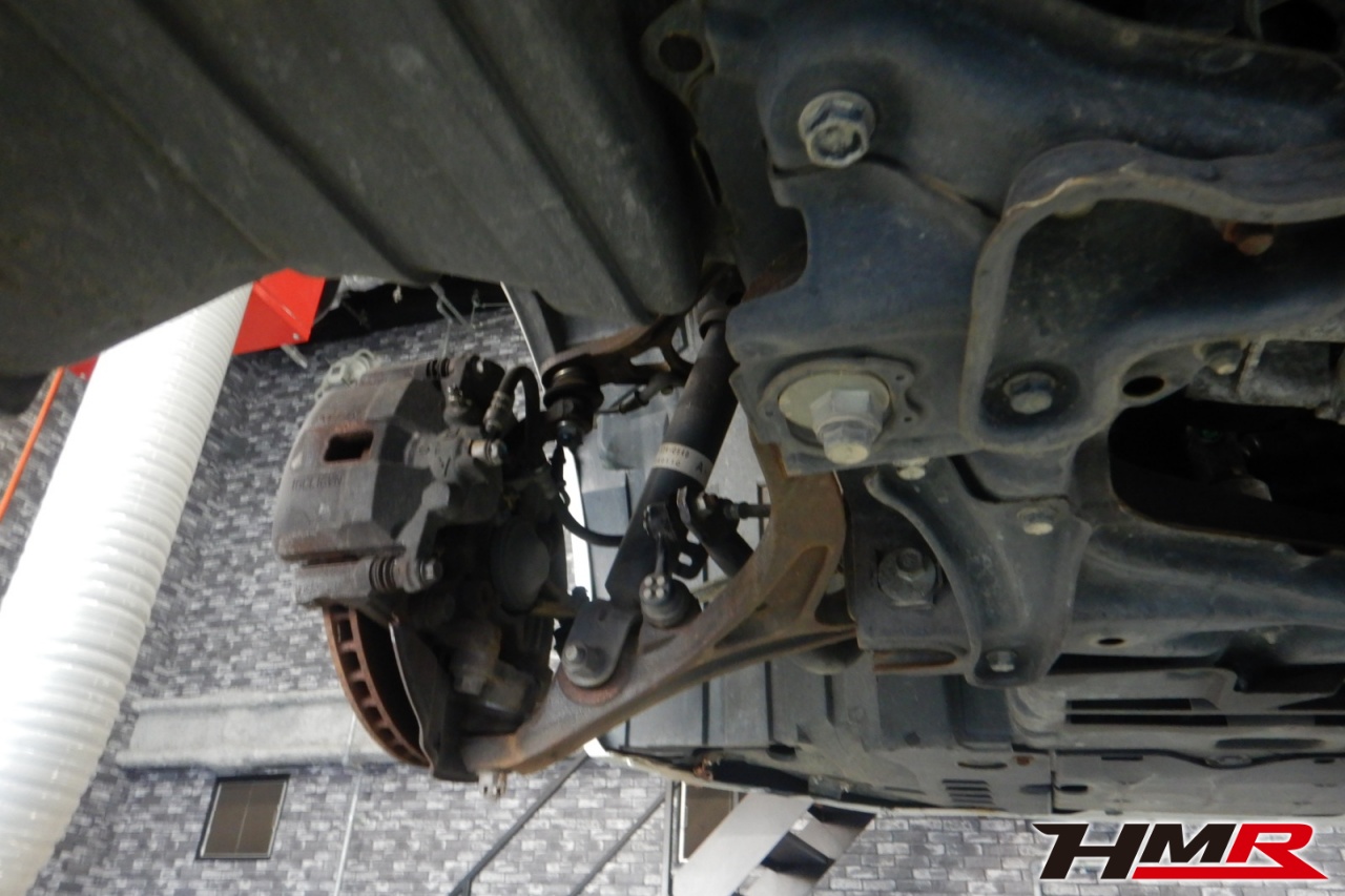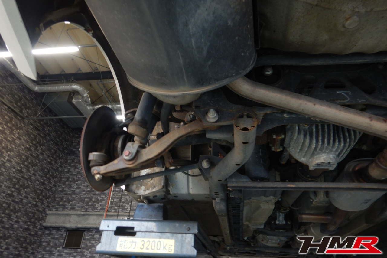ハブベアリング・ボールジョイント、アーム・リンク類のガタ、ブッシュ・ブーツ類の劣化、エンジン・ミッション・デフからのオイル漏れと各マウント類、タイヤ溝の残量、空気圧の点検しました。左右タイロッドエンドブーツ、左右スタビリンクブーツ、左右トーロッドブーツが切れていましたので交換しました。またフロント・リア左右ロアアームブーツに中サイズのヒビが見られましたが、早急に交換する必要はなかったため今後乗っていく中でタイミングを見て交換することをおすすめします。