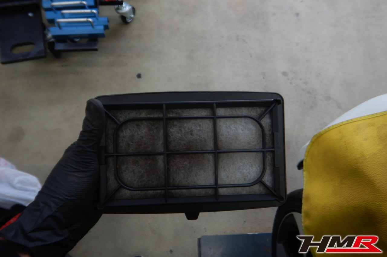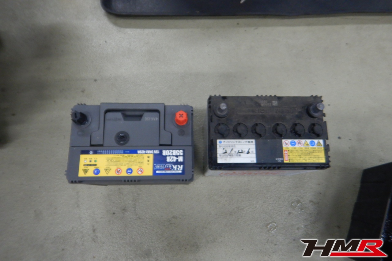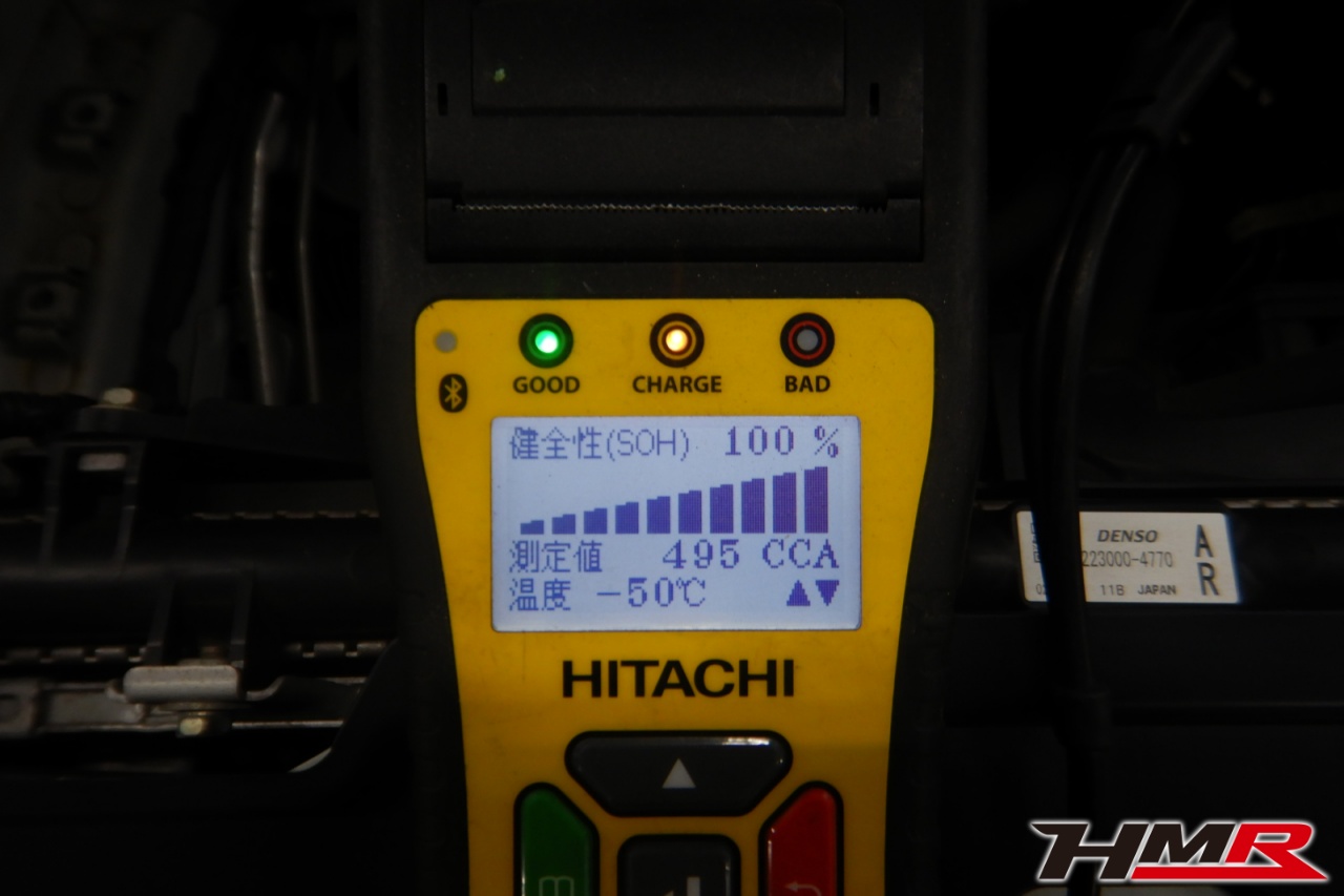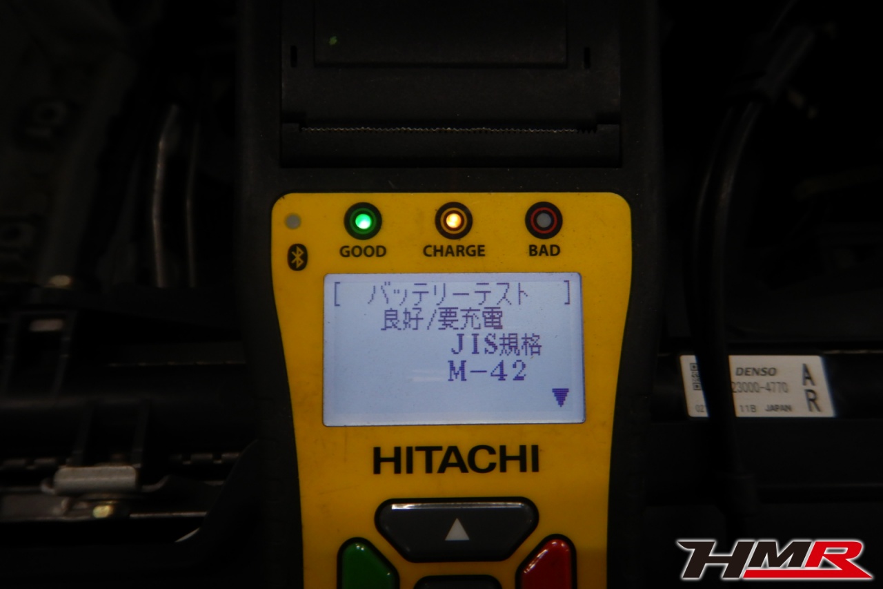 バッテリー、インテークホース、エアクリーナー、補機ベルト、プラグ、ブレーキ・クラッチマスターシリンダー、各部ゴム類の劣化、パッキン類・シール類からのオイル滲み・漏れ、ラジエターの劣化、冷却水漏れ、その他異音などをチェックしました。バッテリーが弱っていたため交換しました。