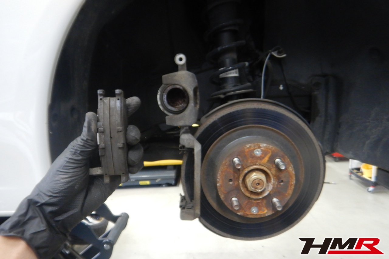 ブレーキキャリパーシール・キャリパーピストン、パッドの残量、ブレーキホースの劣化、ブレーキディスクローターの摩耗をチェックしました。フロントブレーキローターに摩耗が見られましたので交換しました。